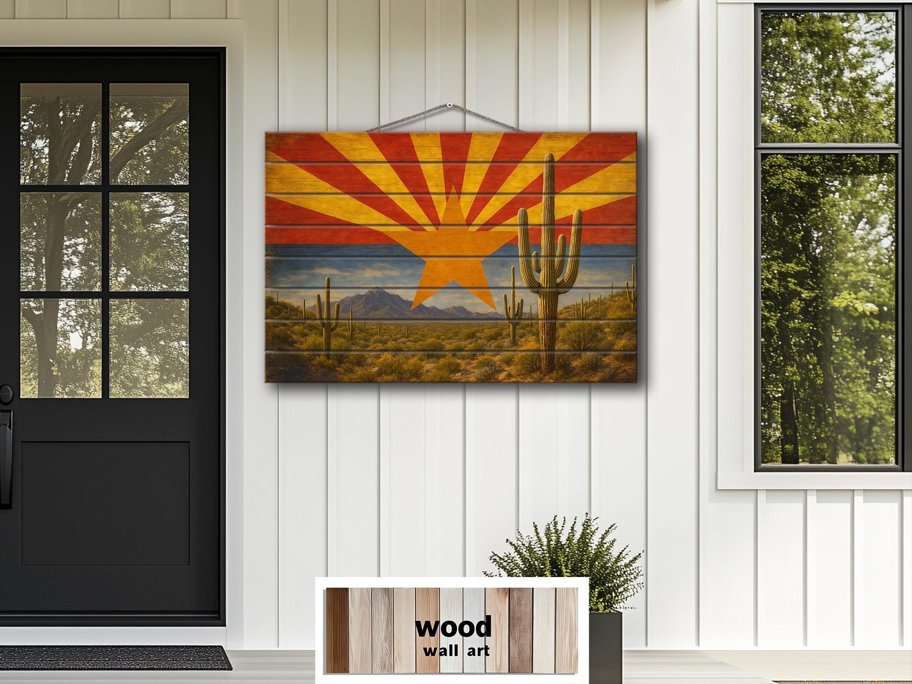 Arizona Flag and Desert Mashup Distressed Wood Wall Art