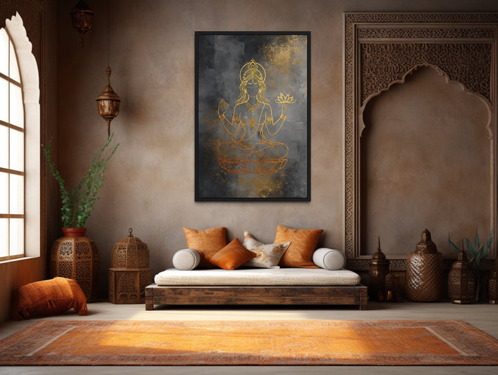 Minimalistische indische Göttin Lakshmi, gerahmte Leinwand, Wandkunst