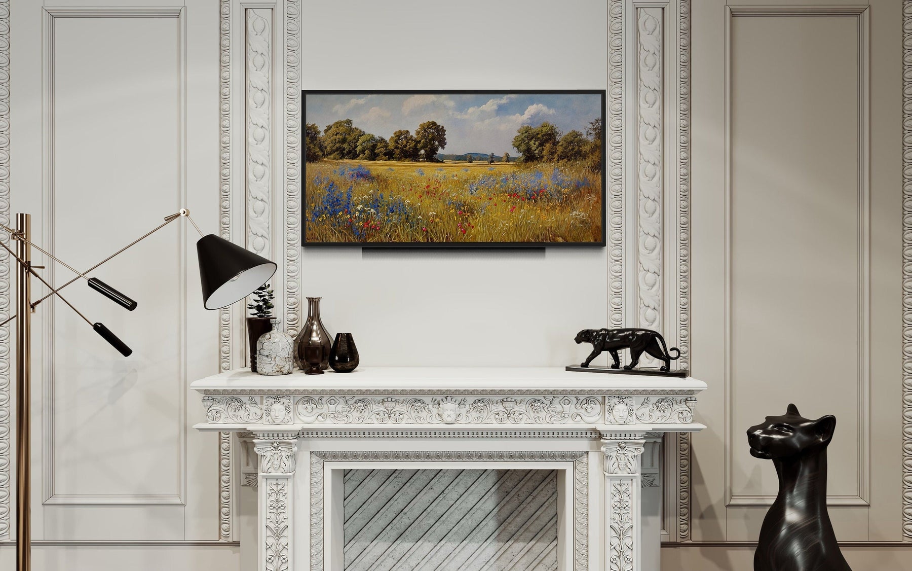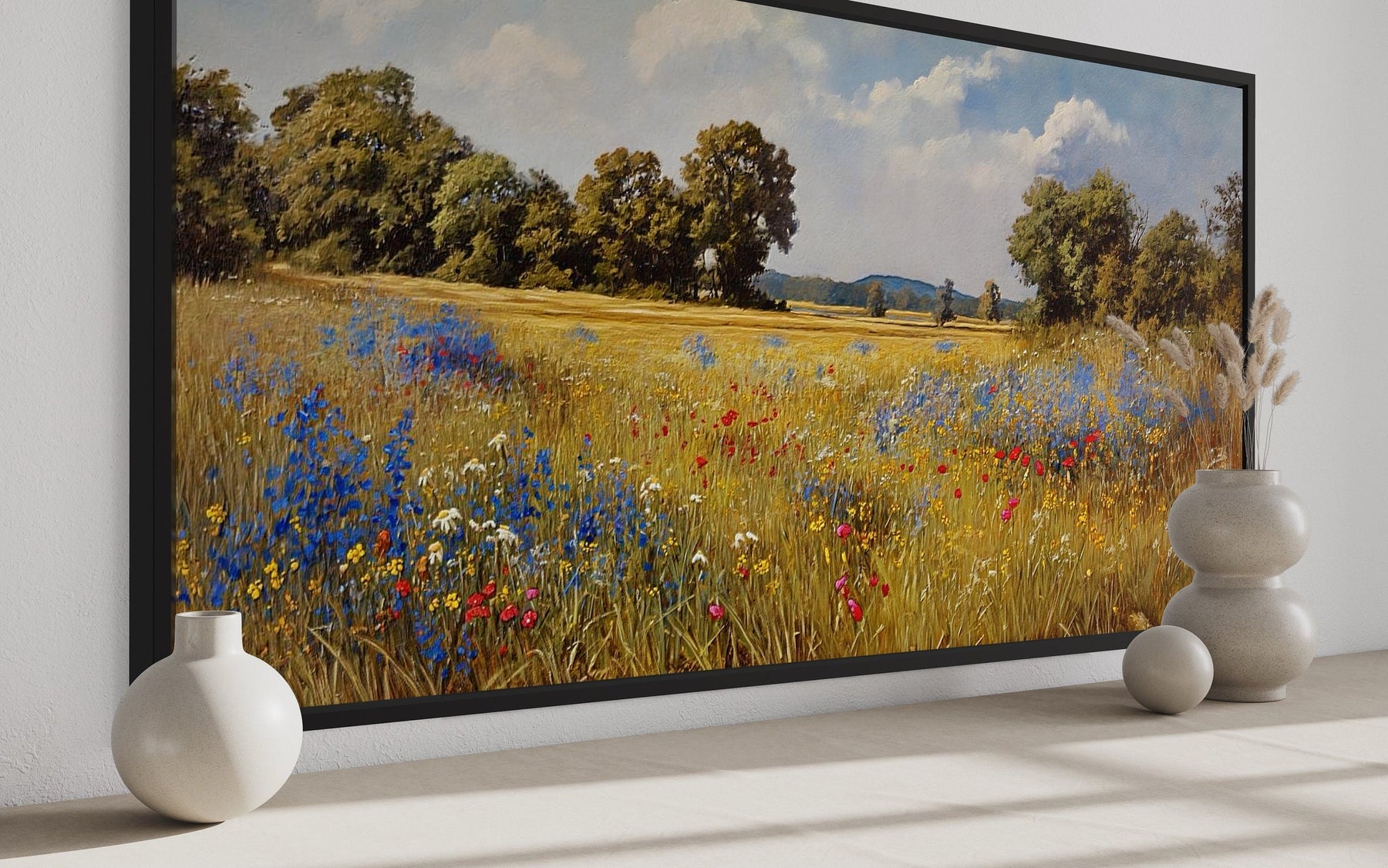 Leinwandbild mit Wildblumen – Vintage-Landschaftsdruck | Gerahmtes Blumenbild