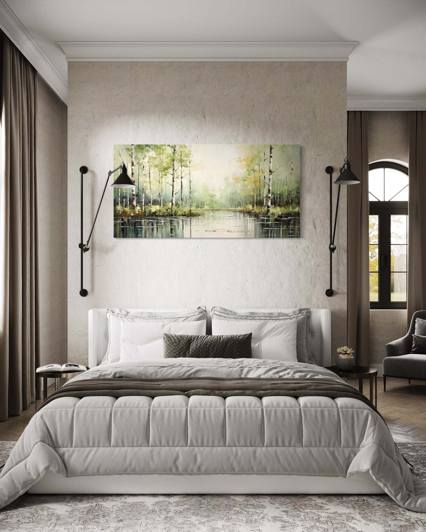 Dieses rustikal-schicke Birken-Wandbild ist perfekt, um die Atmosphäre von Schlafzimmern, Wohnzimmern oder jedem anderen Raum zu verbessern, in dem eine beruhigende und einladende Atmosphäre gewünscht wird. Sein ruhiges Thema macht es zu einer ausgezeichneten Wahl, um einen friedlichen Rückzugsort in Häusern mit rustikalem, bäuerlichem oder skandinavischem Dekor zu schaffen. Die abstrakten Elemente verleihen einen modernen Touch, sodass es auch für zeitgenössische Innenräume geeignet ist. Dieses Kunstwerk ist ideal für Naturliebhaber und diejenigen, die die Schönheit der Natur zu schätzen wissen. Seine Aufhängefertigkeit gewährleistet eine einfache Installation, sodass Sie Ihren Raum mühelos verwandeln können. Das Birkenwaldgemälde verleiht einen Hauch von Eleganz und Ruhe und macht es zu einer geschätzten Ergänzung für Ihr Zuhause.
