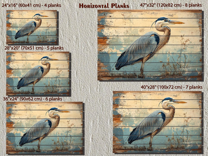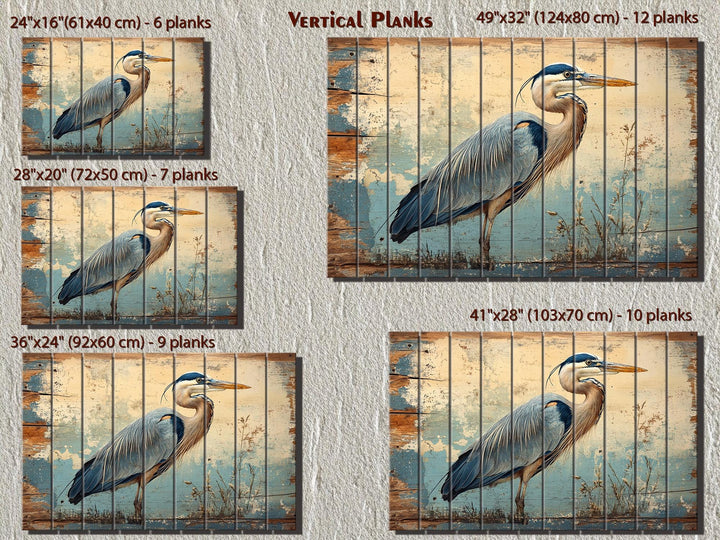 Dieses Küstenkunstwerk passt perfekt zu Strandhäusern, Seehütten oder rustikalen Hütten, die entspanntes Wohnen und natürliche Texturen vereinen. Über einem Sofa, einer Leseecke oder einer Konsole im Eingangsbereich aufgehängt, verbreitet es sofort eine entspannte, einladende Atmosphäre. Es harmoniert wunderbar mit weiß getünchten Hölzern, Korbmöbeln, Seeglasdekor und Leinendecken, die das Leben an der Küste oder am See widerspiegeln. Die Echtholzstruktur unter dem Druck harmoniert mit Nut- und Federwänden, Dielenböden oder wiederverwendeten Möbeln, die man üblicherweise in Ferienhäusern und Rückzugsorten findet. Egal, ob Ihr Raum eher im maritimen oder ländlichen Chic gehalten ist, dieses Reiher-Kunstwerk verbindet alles mit sanftem Charme und malerischer Präsenz. Es ist ideal für Räume, die Ruhe und Natur zelebrieren – Orte für den Morgenkaffee, ruhige Bücher und sanftes Licht. Selbst in Häusern ohne Uferpromenade verbreitet dieses Stück eine solche Stimmung: ruhig, frisch und wunderbar entspannt. Seine vertikale Form und das anmutige Motiv machen es perfekt für hohe, schmale Räume, denen Sie Persönlichkeit verleihen möchten, ohne Unordnung. Unsere Wandkunst mit Küstenvögeln bereichert entspannte und luftige Häuser mit Seeatmosphäre und rustikalem Charme durch dieses rustikale Holzschild mit einem blauen Reiher.