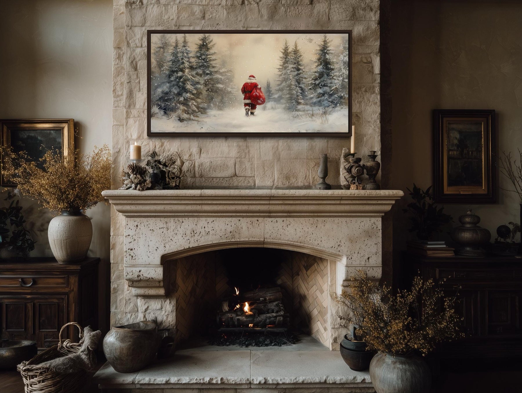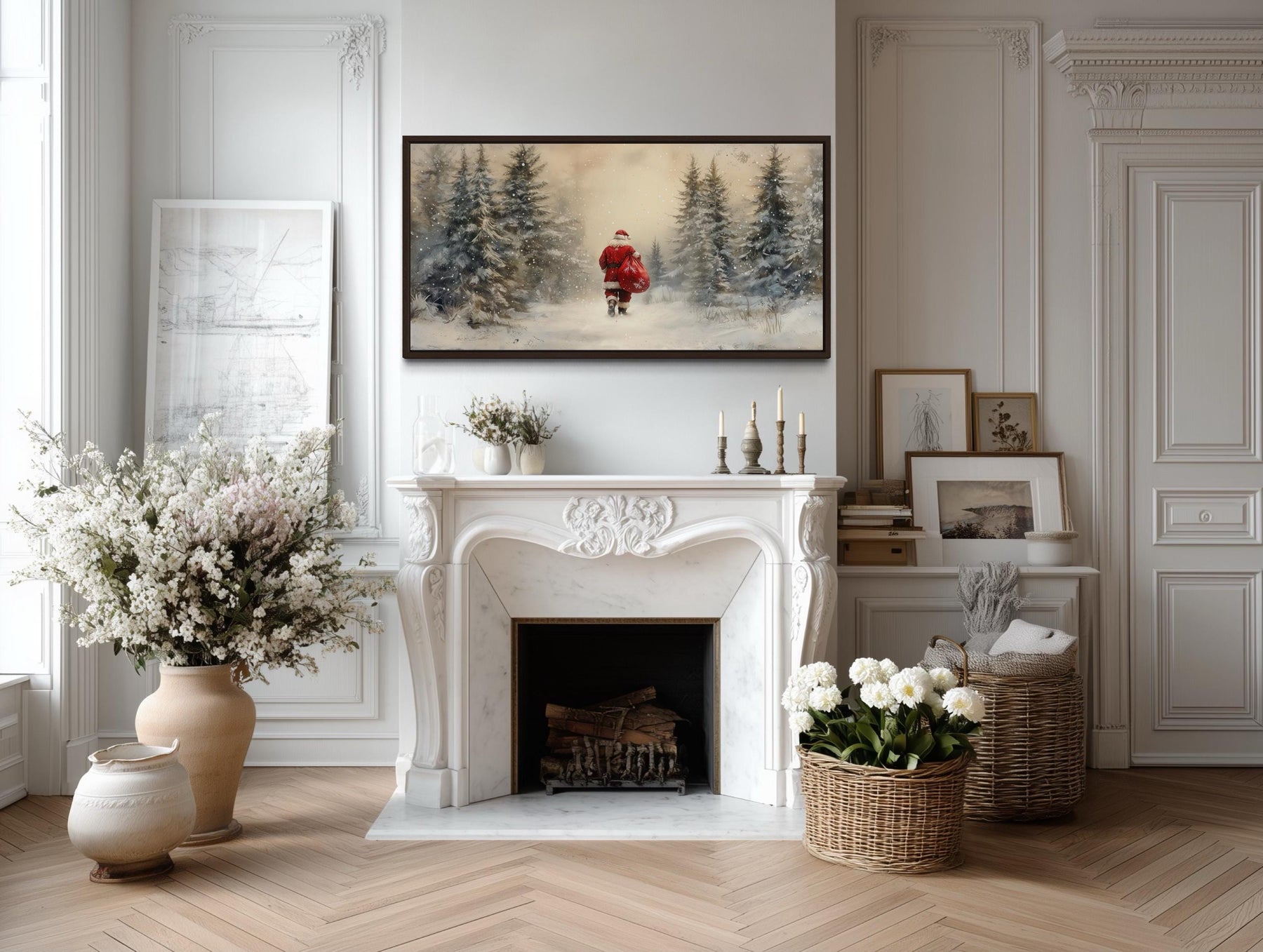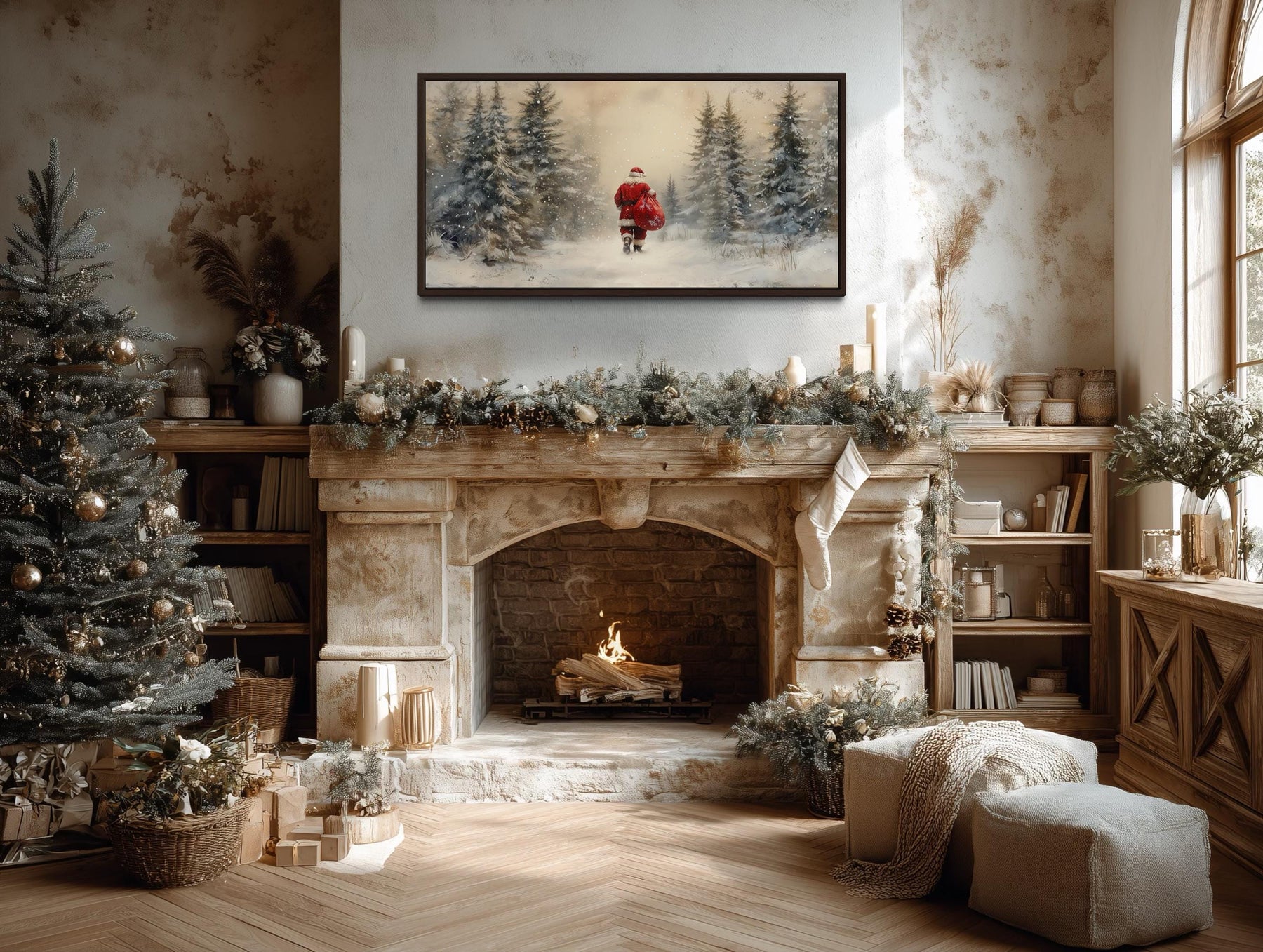 Unser Wandbild „Weihnachtsmann im verschneiten Winterwald“ ist ideal für gemütliche Weihnachtsdekorationen im Landhausstil und warme Wohnzimmer, die den nostalgischen Charme der Winterzeit verströmen. Es passt wunderbar über Kamine, Kaminsimse und Eingangstische, wo sanftes Weihnachtslicht die friedliche Atmosphäre unterstreicht. In Landhaushäusern mit Holztexturen, Strickdecken, rustikalen Akzenten und warmen, neutralen Tönen fügt sich diese Winterlandschaft harmonisch in die Weihnachtsdekoration ein. Besonders gut wirkt sie in Wohnzimmern, die mit Girlanden, Kerzen, Tannenzweigen und dezenten Weihnachtsaccessoires geschmückt sind. Die ruhige Waldszene wirkt beruhigend und ist daher perfekt für Räume, in denen Familien in der Weihnachtszeit zusammenkommen, um zu entspannen. Auch Häuser im Blockhausstil harmonieren perfekt mit dem verschneiten Waldmotiv und holen das Gefühl eines Winterwaldes ins Haus. Die sanfte Illustration verleiht Räumen, die mit klassischem Weihnachtsschmuck und natürlichen Materialien dekoriert sind, eine warme, behagliche Atmosphäre. Ihre sanften Farben und die friedliche Komposition ergänzen traditionelle, rustikale und elegante Weihnachtseinrichtungen gleichermaßen. Dieses Kunstwerk verleiht jedem Zuhause in der Weihnachtszeit eine nostalgische Ruhe und rundet den Raum mit der zeitlosen Schönheit des Wandbildes „Weihnachtsmann im verschneiten Winterwald“ ab.