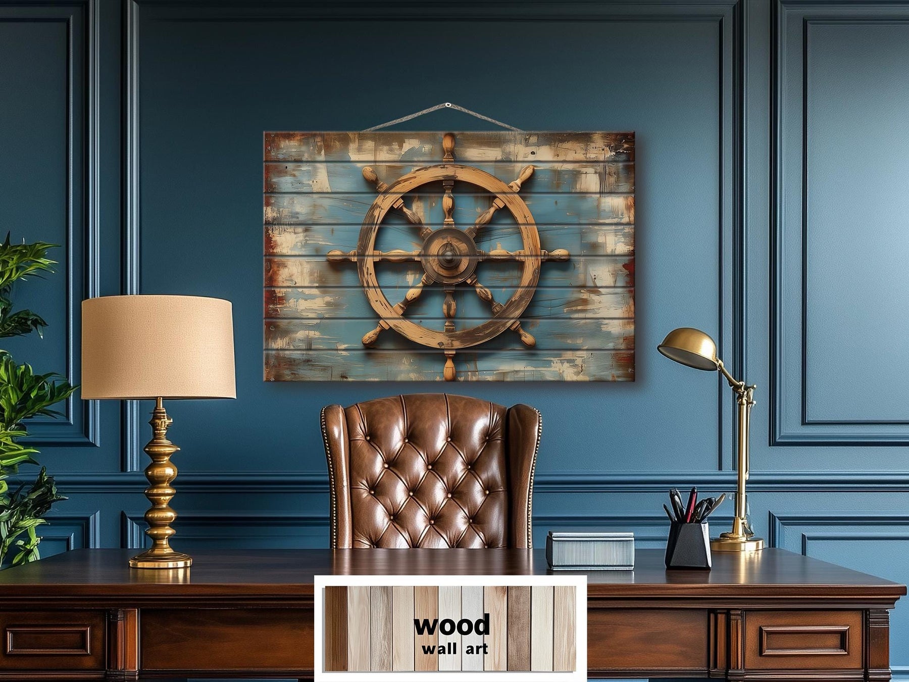 Wandbild mit Steuerrad – Maritime Dekoration aus Altholz | Rustikale Küstenkunst für Männer