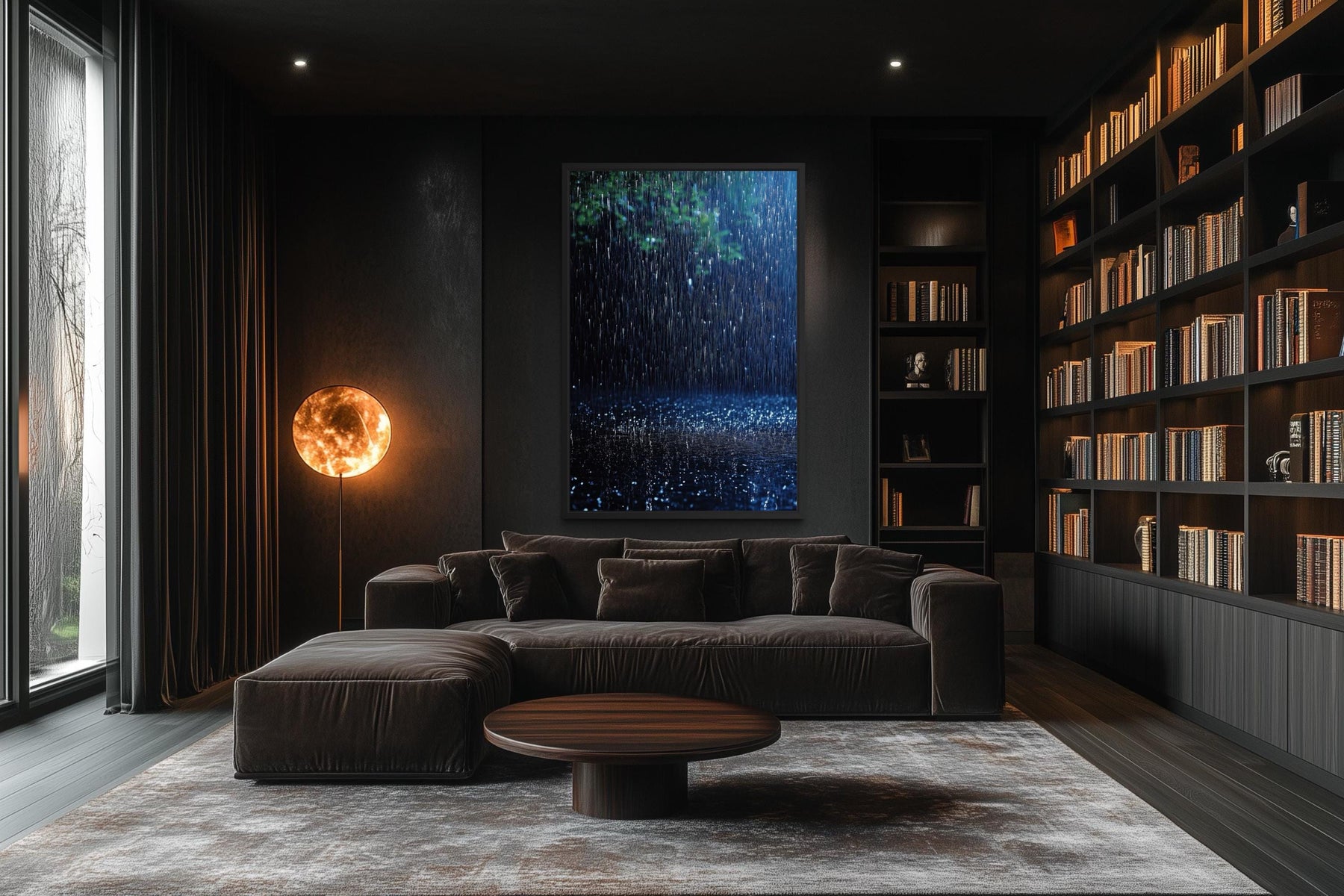 This Blue Rain and Tree artwork is designed for modern, minimalist, and contemporary homes where atmosphere and texture take center stage. Its deep tones and reflective mood make it an ideal focal point for living rooms, bedrooms, or reading nooks that celebrate quiet luxury and emotional depth. In modern interiors, the artwork enhances clean spaces with subtle movement and drama, adding depth without overpowering the aesthetic. The cool color palette complements neutral walls, metal accents, and dark wood finishes, creating harmony through contrast. In a minimalist setting, its vertical rain pattern adds rhythm and texture, balancing simplicity with sophistication. For moody or industrial spaces, it introduces a touch of elegance that softens edges and infuses emotion. In a bedroom, it becomes a meditative anchor, evoking the soothing energy of rainfall on a still night. Its understated beauty and versatile palette allow it to transition seamlessly between masculine and feminine designs. Whether displayed alone or paired with modern lighting, it captures the essence of nature’s quiet strength. This Blue Rain and Tree canvas wall art embodies tranquility, sophistication, and timeless emotional depth—perfect for homes that value both serenity and style.