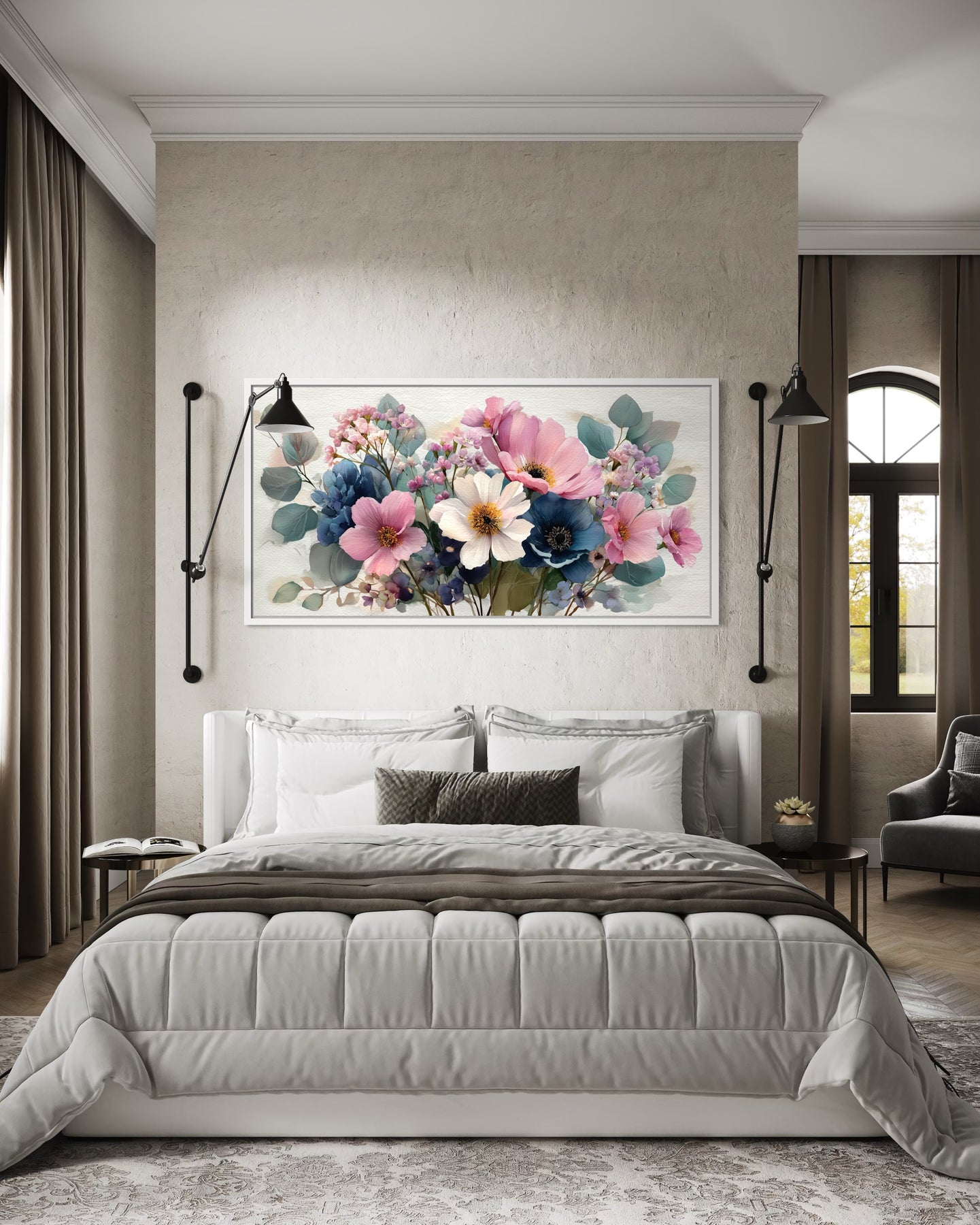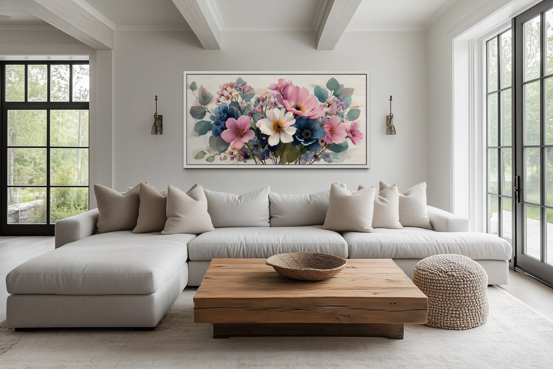 Our wildflower wall decor is a beautiful fit for cozy farmhouse living rooms, bright cottage bedrooms, or light-filled kitchens where botanical accents are welcome. This floral canvas adds life and color to homes that embrace vintage charm, handmade textures, and soft textiles like linen or cotton. Its horizontal layout is perfect above headboards, couches, or dining benches, especially when paired with shiplap walls or painted antique furniture. It’s also an excellent choice for nurseries, feminine home offices, or guest rooms where comfort and beauty go hand in hand. The soft florals bring an inviting presence without overpowering—perfect for those who love garden motifs and peaceful surroundings. It adds a pop of personality to neutral rooms and complements blush or sky-blue accents beautifully. Whether you’re curating a warm farmhouse retreat or a soft romantic haven, this piece adds warmth and color with ease. Our wildflowers canvas wall art brings cheerful floral elegance to gentle, garden-inspired interiors.
