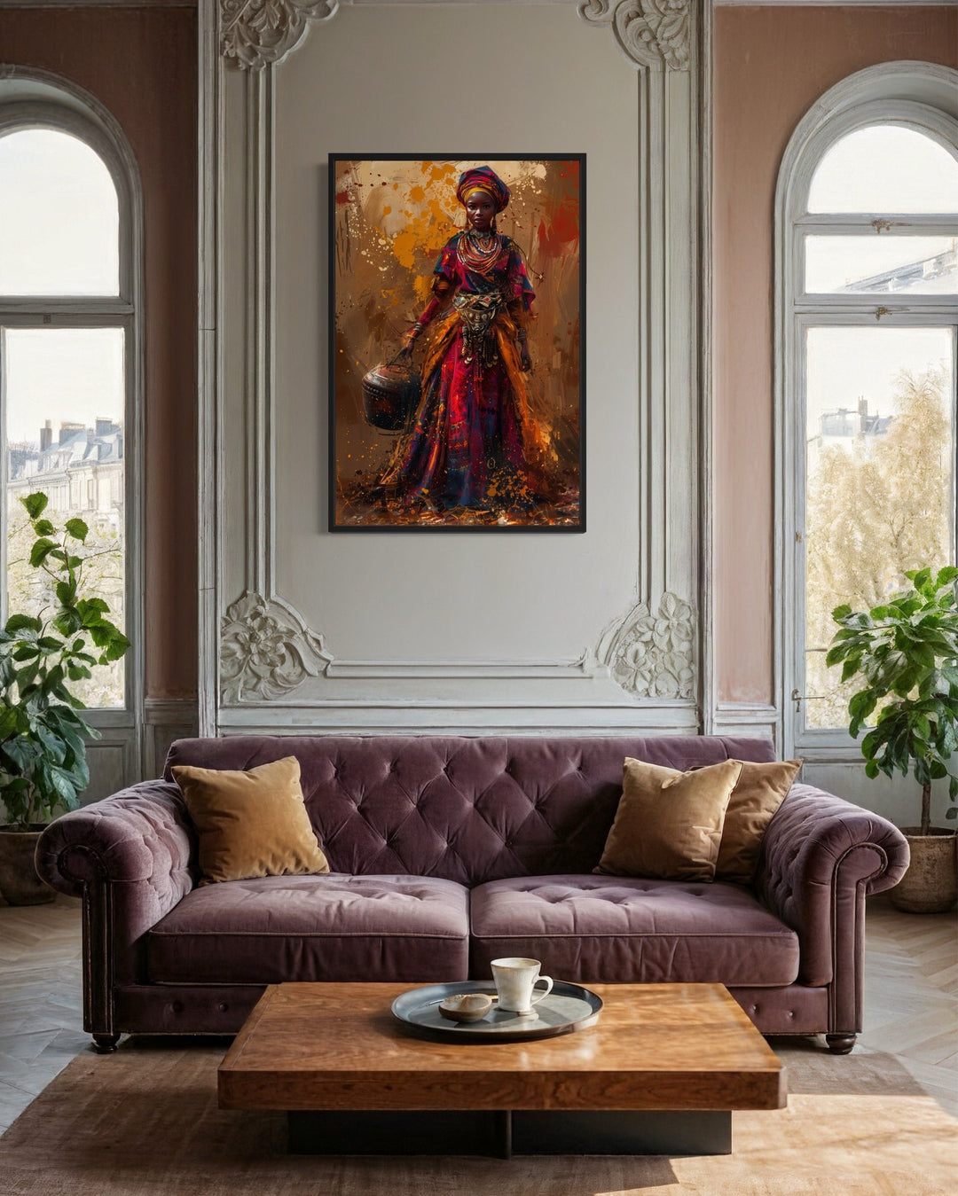 Our African wall decor is particularly well-suited for homes that appreciate bold and meaningful art. Imagine a striking painting of a lion's powerful gaze or a graceful giraffe standing tall, adding a sense of majesty and wonder to your living room or hallway. Or consider a serene landscape of the African savannah, with its vast horizons and dramatic skies, bringing a touch of tranquility and natural beauty to your bedroom or study. These pieces are also perfect for enhancing the decor of dining areas, where scenes of African people and wildlife can spark conversation and admiration. The intricate details and vibrant colors of our African wall art ensure that each piece is a testament to the rich cultural heritage and natural splendor of Africa.