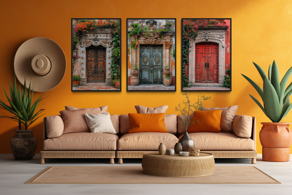 Step into a world of beauty and charm with our exquisite collection of doors wall art. Our curated selection features sets of three doors or individual paintings of doors in various colors and styles, perfect for adding a touch of architectural elegance to your home. From the vibrant hues of Mexican doorways to the intricate details of Indian and Italian door designs, each piece captures the essence of cultural heritage and craftsmanship.