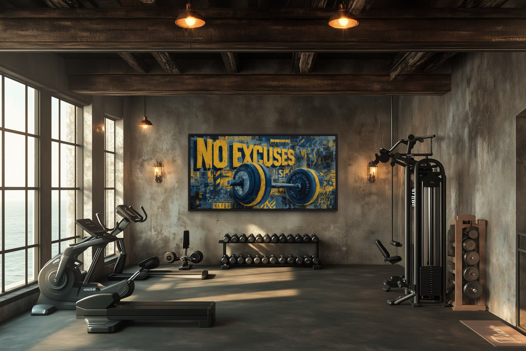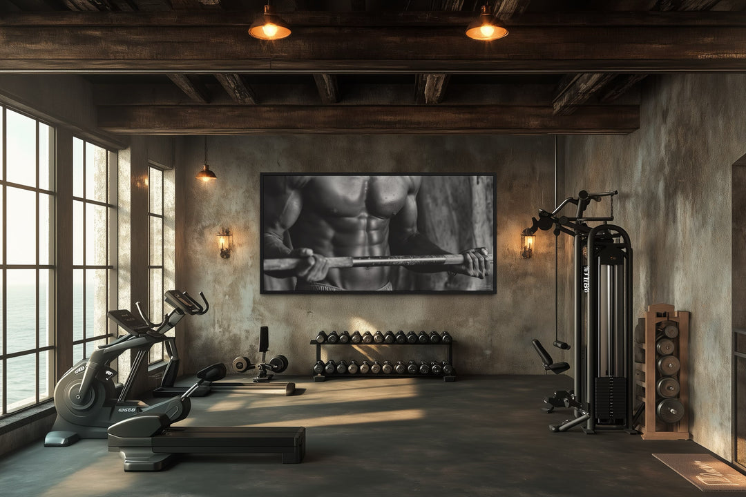 Our home gym wall decor is tailored for spaces dedicated to health and physical betterment. Whether you're outfitting a small home gym or a larger fitness facility, these artworks provide a constant reminder of your fitness goals and the strength needed to achieve them. Each piece is crafted to withstand the rigors of a gym environment, from moisture-resistant finishes to durable frames, ensuring they remain a part of your fitness journey for years to come. The art’s compelling imagery and powerful messages make it ideal for anyone looking to create a space that embodies the spirit of endurance and perseverance.