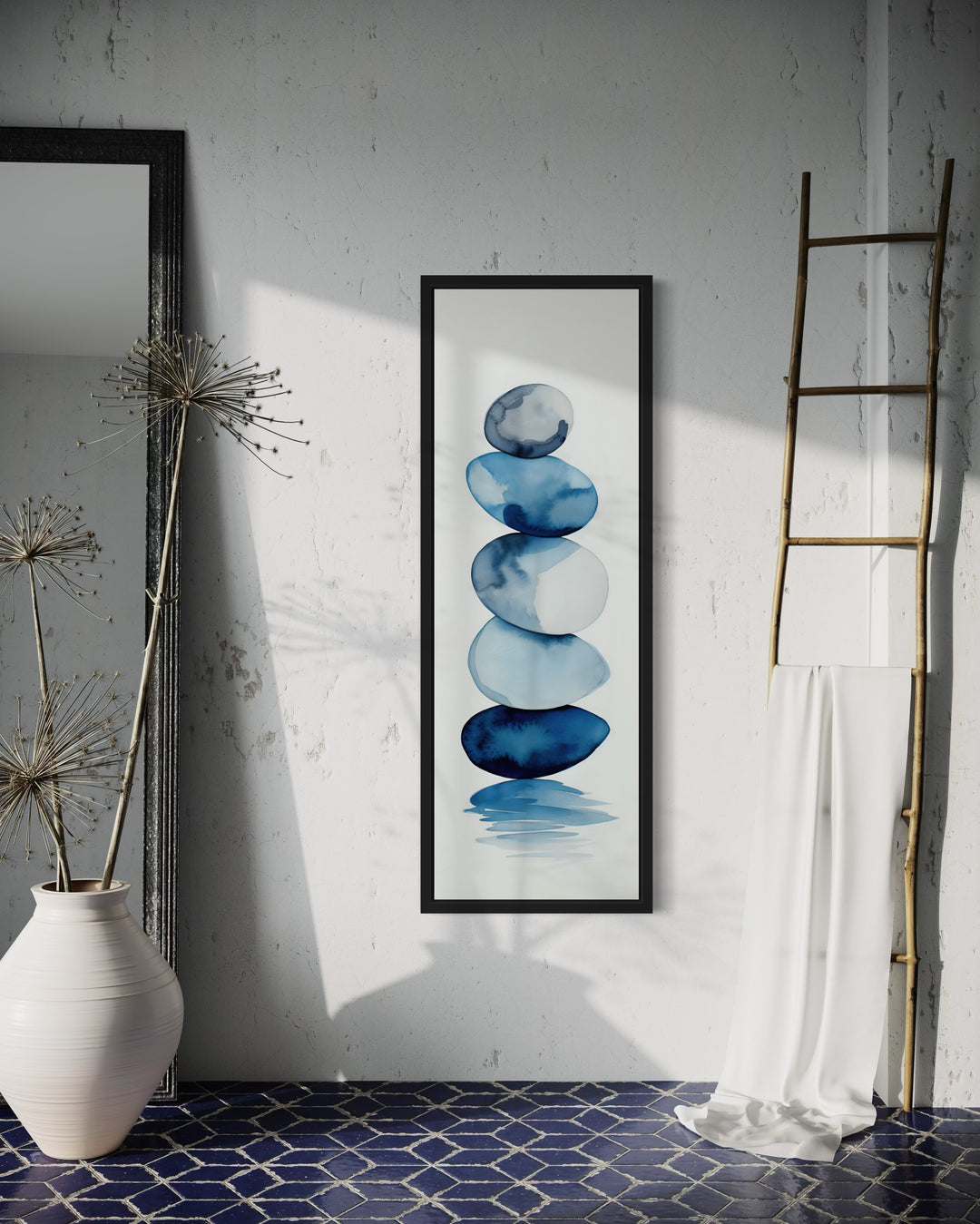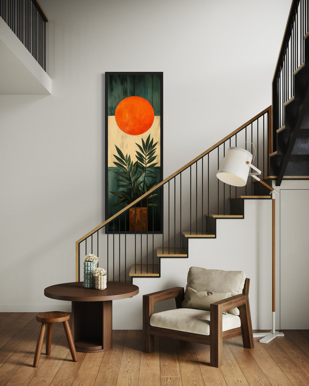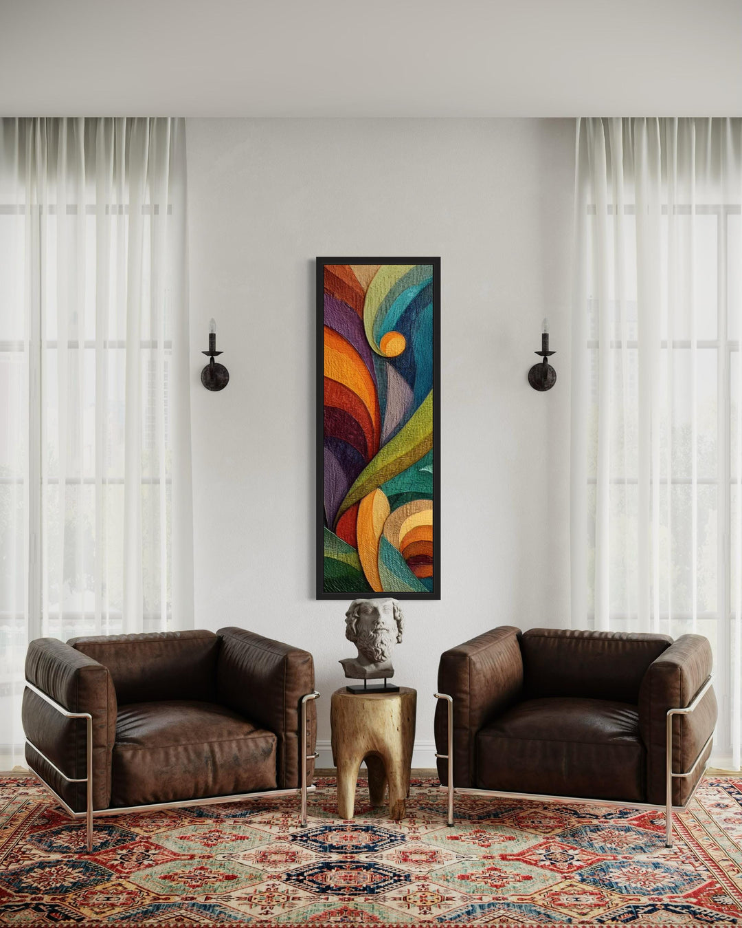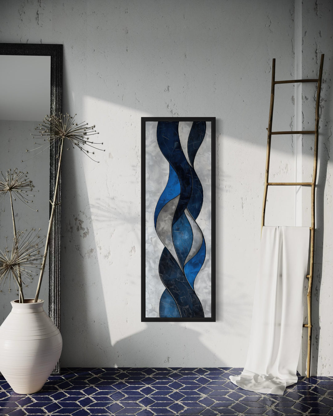 Our stunning tall narrow vertical wall art collection beautifully captures a variety of subjects and styles, making it the perfect addition to any space. The collection highlights diverse artistic styles, including mid-century modern designs with clean lines, art deco patterns in navy blue and gold, and rustic tapestry-style pieces that suit farmhouse and cabin-inspired interiors. From serene mountains and cascading oceans to vibrant desert landscapes featuring sunlit cactuses, each piece transforms walls into striking focal points. Bold abstracts and geometric forms of our long thin vertical canvases bring a contemporary edge, while Southwestern influences and warm earthy tones evoke timeless charm. Coastal themes, complete with graceful herons, offer tranquility, while natural elements like flowers and trees add softness and beauty. This versatile selection ensures seamless integration into any decor, whether you seek modern sophistication or rustic warmth. Elevate your interiors with the perfect harmony of nature, style, and creativity captured in our collection.