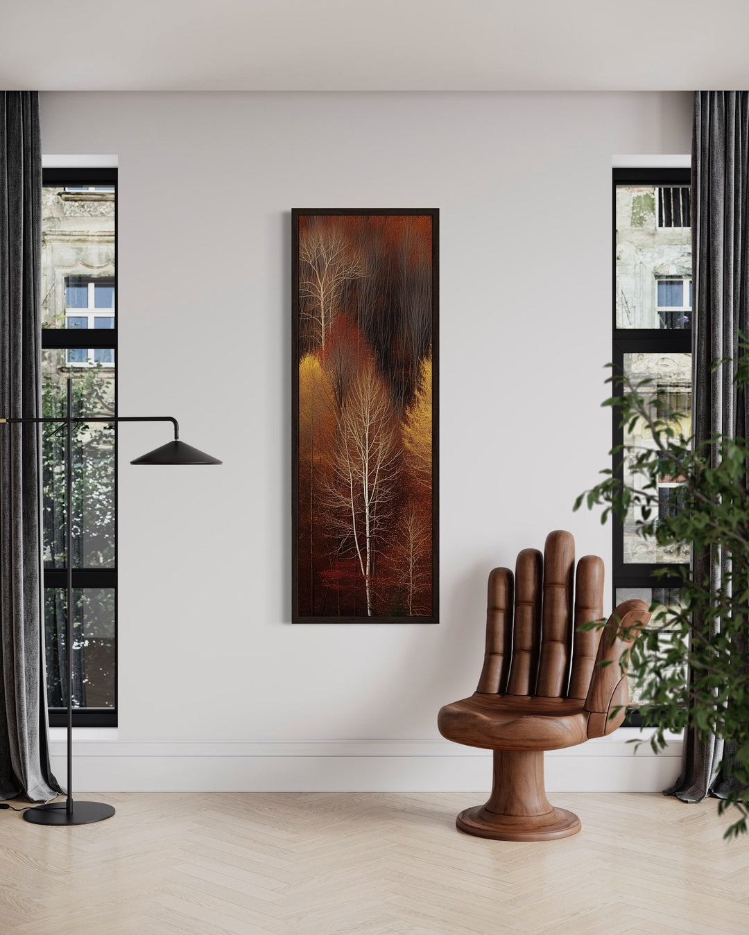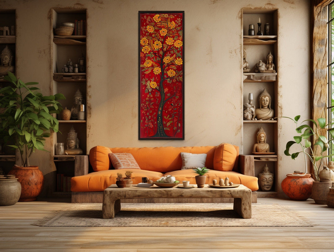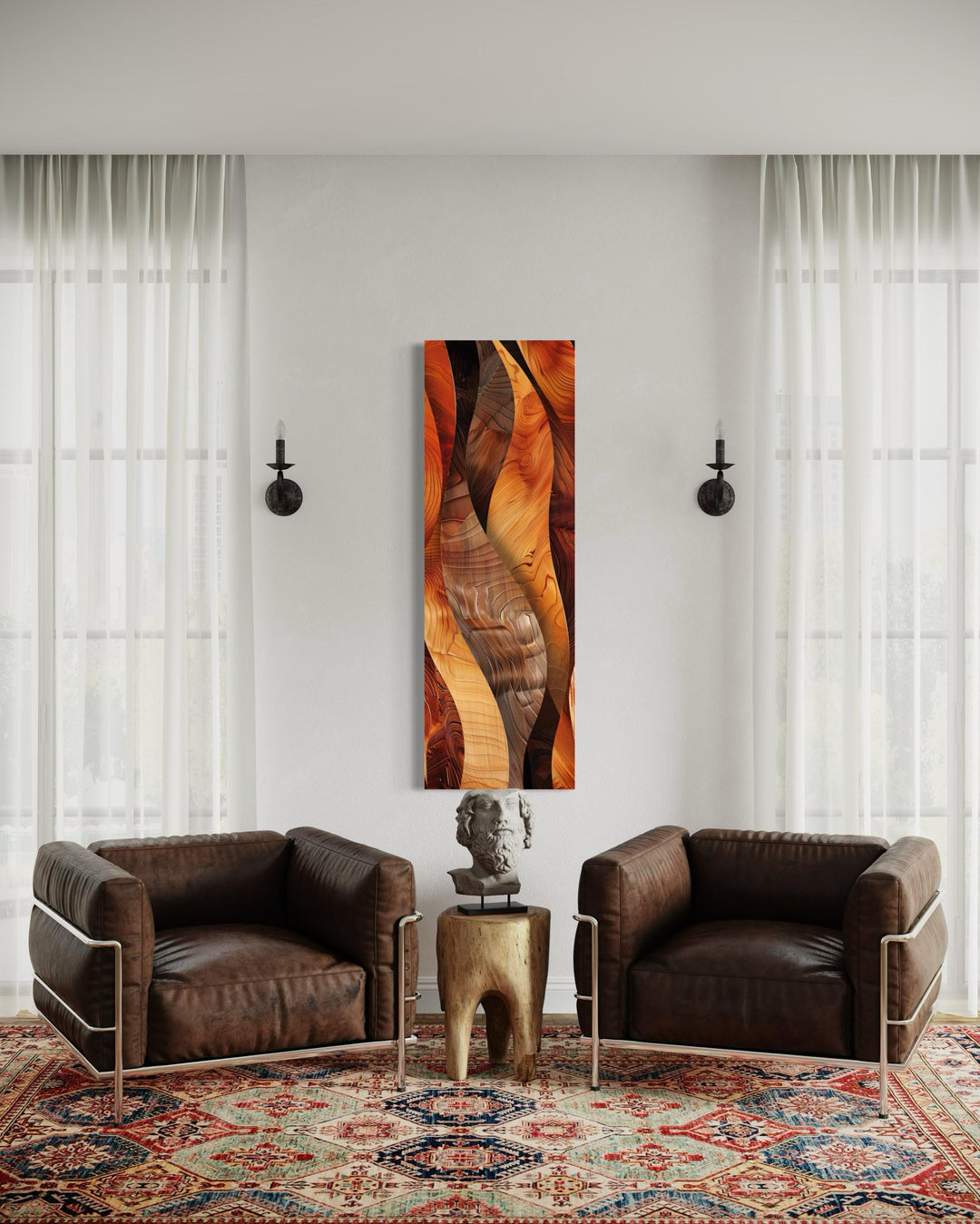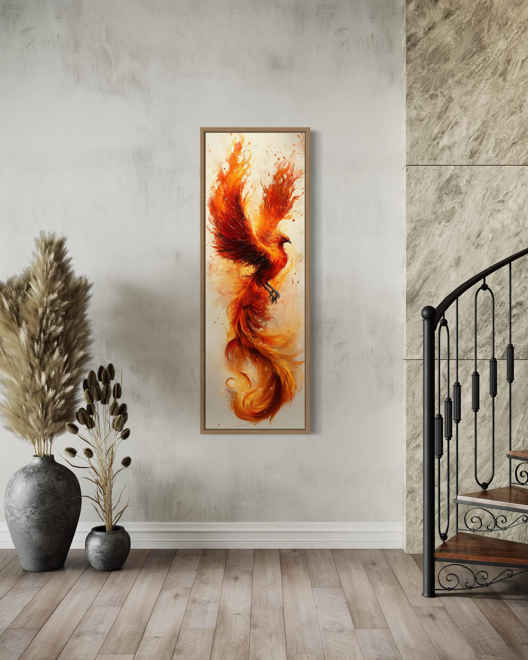 The variety of tall narrow vertical wall decor styles ensures a perfect match for every home aesthetic. Mid-century modern pieces showcase minimalist shapes and balanced lines, ideal for creating understated sophistication, while art deco designs incorporate bold contrasts and luxe metallics for an upscale feel. Rustic themes, with their wood textures and warm tones, bring coziness to farmhouse and cabin interiors, while tapestry-inspired works exude vintage charm with intricate patterns and subtle details. Southwestern influences, featuring sunlit desert scenes and earthy palettes, offer a sense of adventure and warmth, perfect for eclectic spaces. Contemporary abstract art and vibrant geometric patterns deliver a modern touch, making bold statements in minimalist or urban settings. Whether drawn to the organic flow of ocean waves, the grandeur of mountain landscapes, or the serenity of floral motifs, this collection has a piece to match your unique style. Let your walls come to life with timeless beauty and sophistication through our vertical narrow wall art collection.