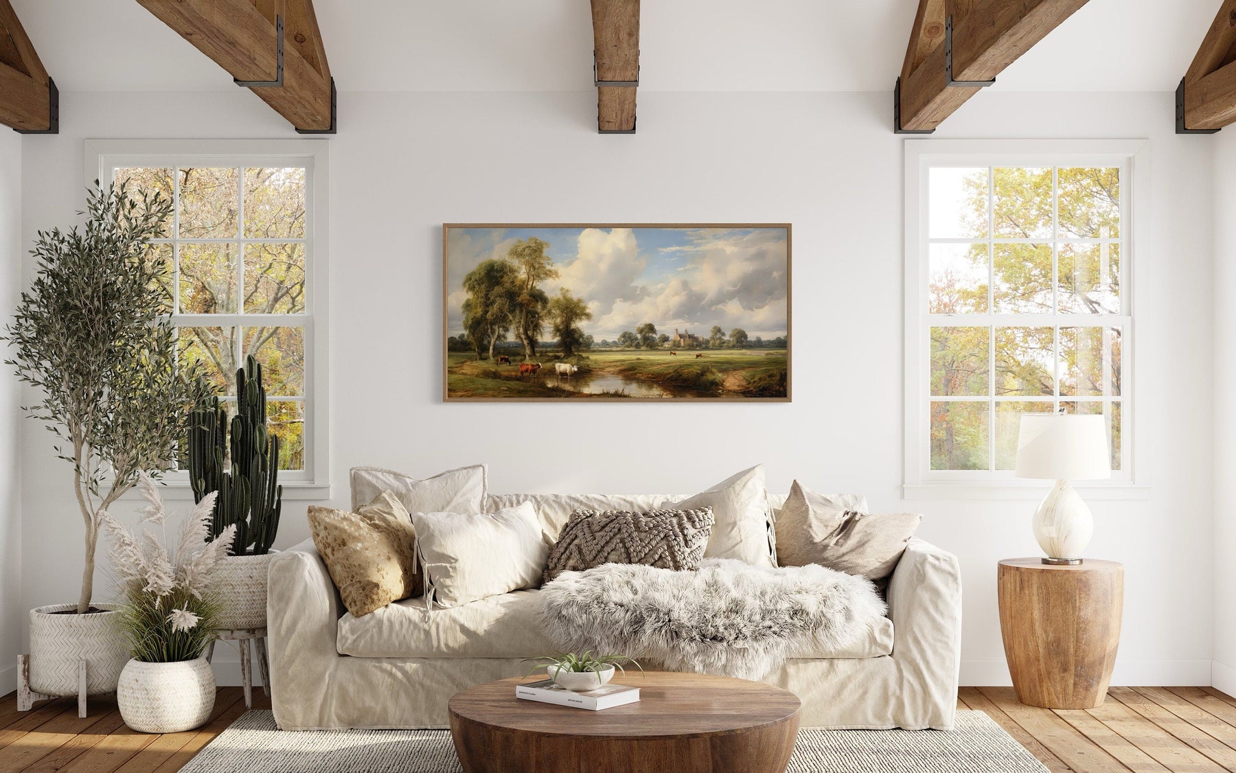 Pastoral Country Landscape | Antique Wall Art - Framed Canvas For Farmhouse Decor