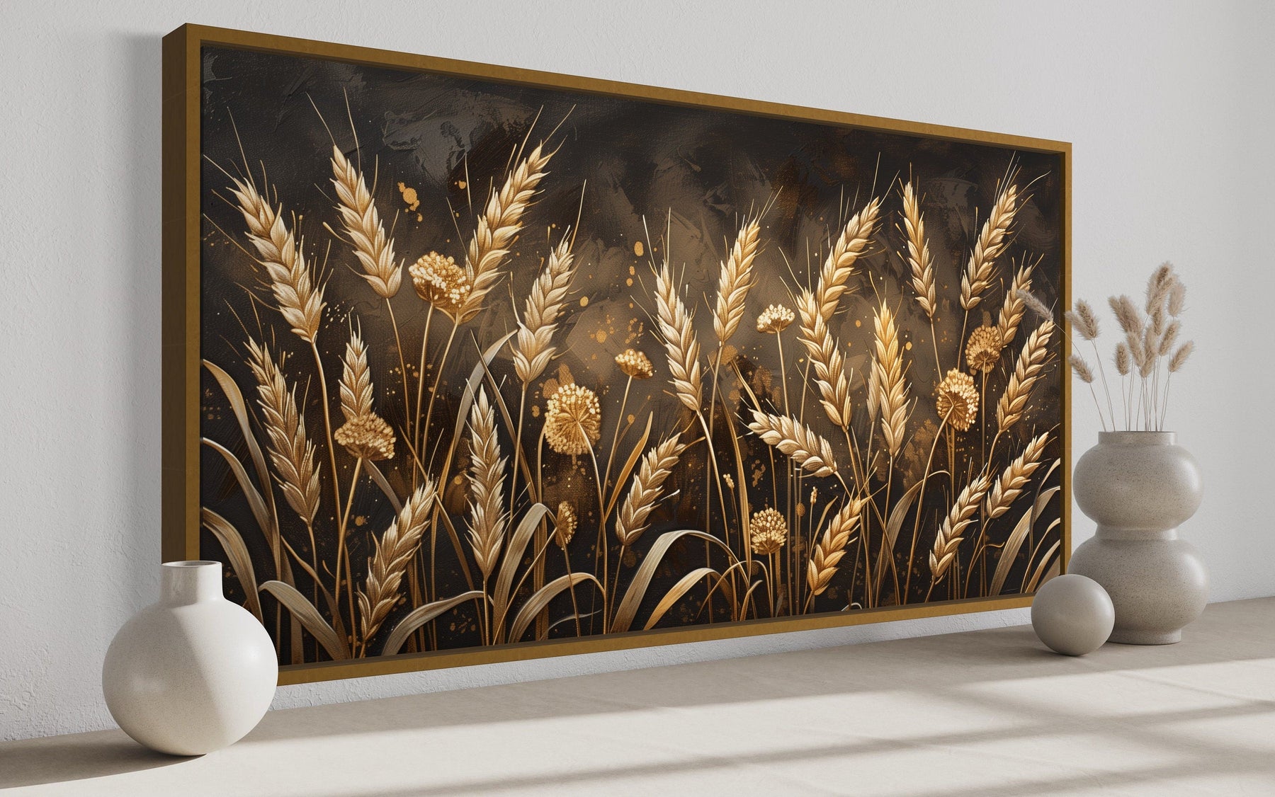 Ideal for homes with rustic, boho, or farmhouse aesthetics, this canvas print seamlessly enhances the ambiance of living rooms, bedrooms, or dining spaces. Its versatile design makes it suitable for both modern and traditional interiors, offering a touch of understated elegance to any decor. The horizontal orientation is perfect for larger walls, such as above a sofa or along a dining room sideboard. Whether styled in a cozy reading nook or as a statement piece in a contemporary living area, this boho wheat field wall art adds a calming and sophisticated vibe. Create a tranquil space that reflects your appreciation for natural beauty and rustic charm with this captivating wall art. Add a warm and inviting touch to your decor with the timeless elegance of this boho wheat field wall art.