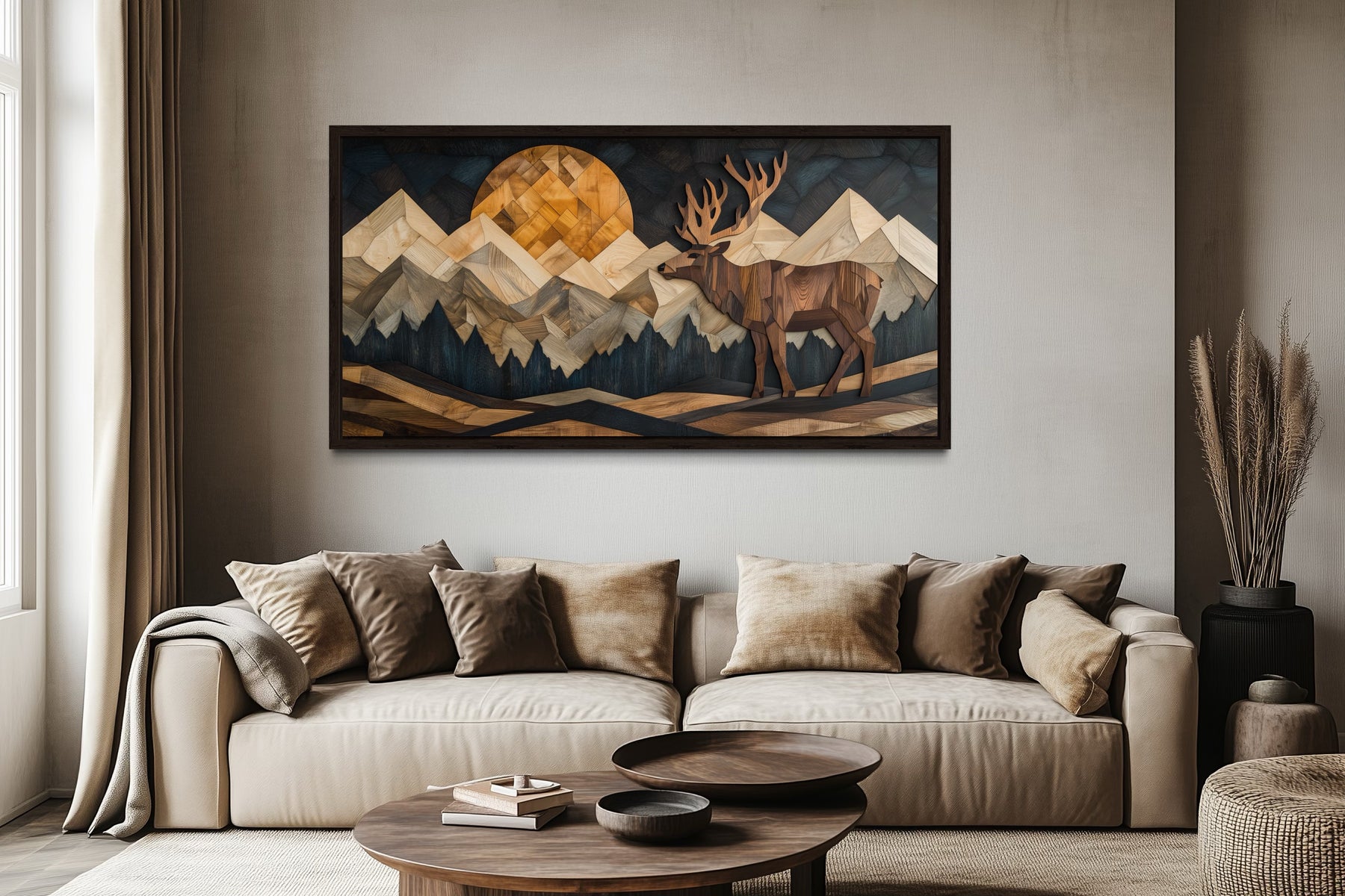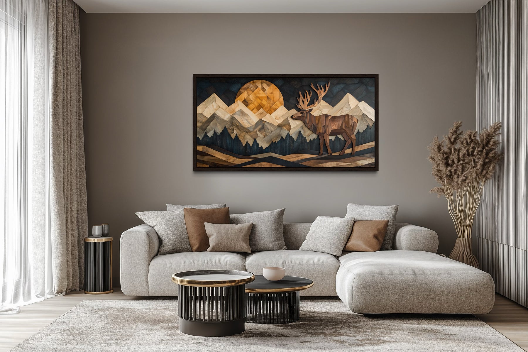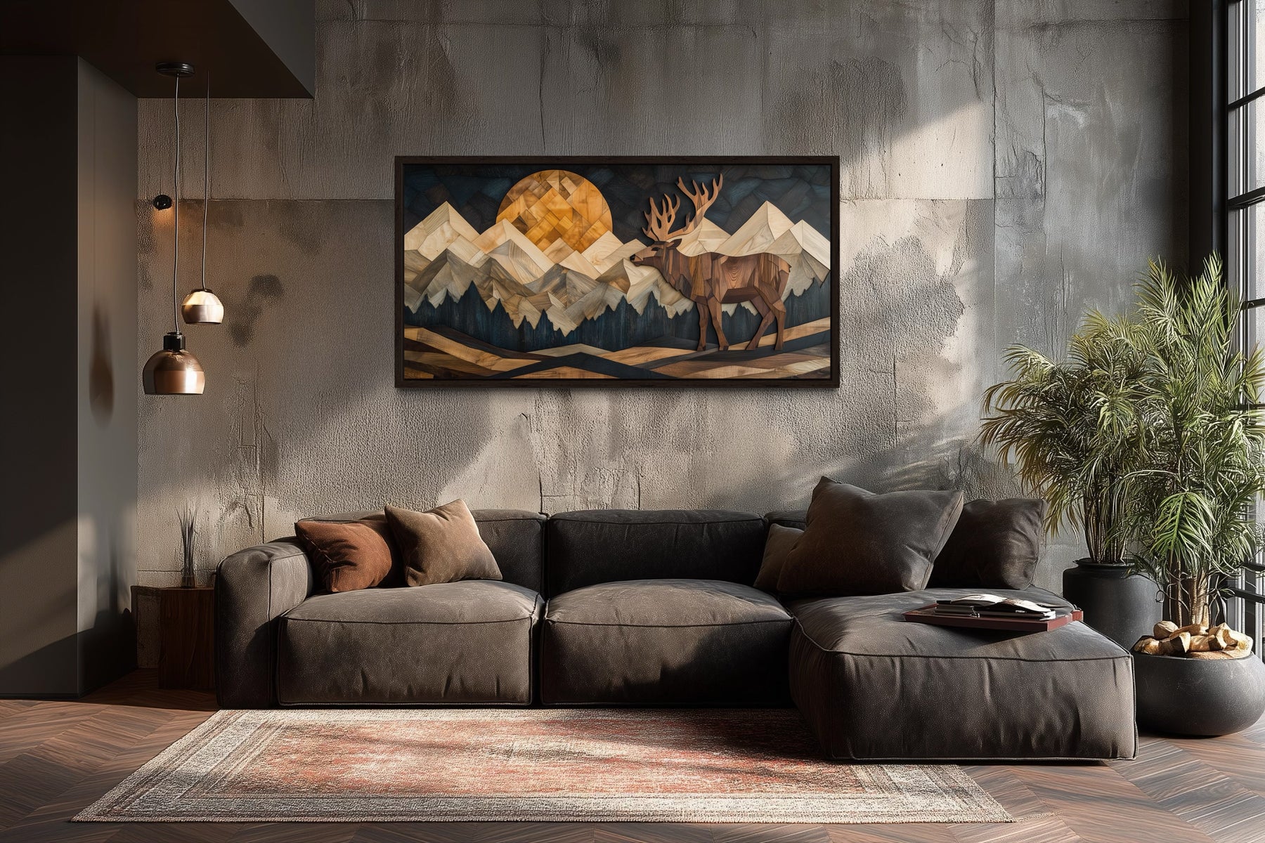 This framed canvas wall art is a natural fit for rustic cabins, mountain lodges, or nature-inspired man caves that embrace wildlife, timber, and earth tones. Its horizontal shape works beautifully above a fireplace mantel, sofa, or bed, filling wall space with strength and grounded energy. It’s the kind of piece that brings outdoor serenity into indoor spaces without needing bold colors or flashy details. Homes styled with leather armchairs, plaid throws, reclaimed wood furniture, or antler decor will find this artwork blends seamlessly with their aesthetic. Even in modern rustic spaces that feature concrete, metal, or minimalism, the panel effect softens the wall and introduces warmth. It’s ideal for homeowners who appreciate hunting themes, forest landscapes, or simply want a visual connection to the mountains. Whether it’s hung in a living room, entryway, or weekend retreat, it commands attention while maintaining calm. The detail in the elk, paired with the subtle wood effect, makes it feel like both a portrait and a landscape rolled into one. For those who want their decor to reflect heritage, wild beauty, and a love for untamed spaces, this is the perfect centerpiece. Our elk in forest framed canvas wall art is the final touch for any space built around mountain life.