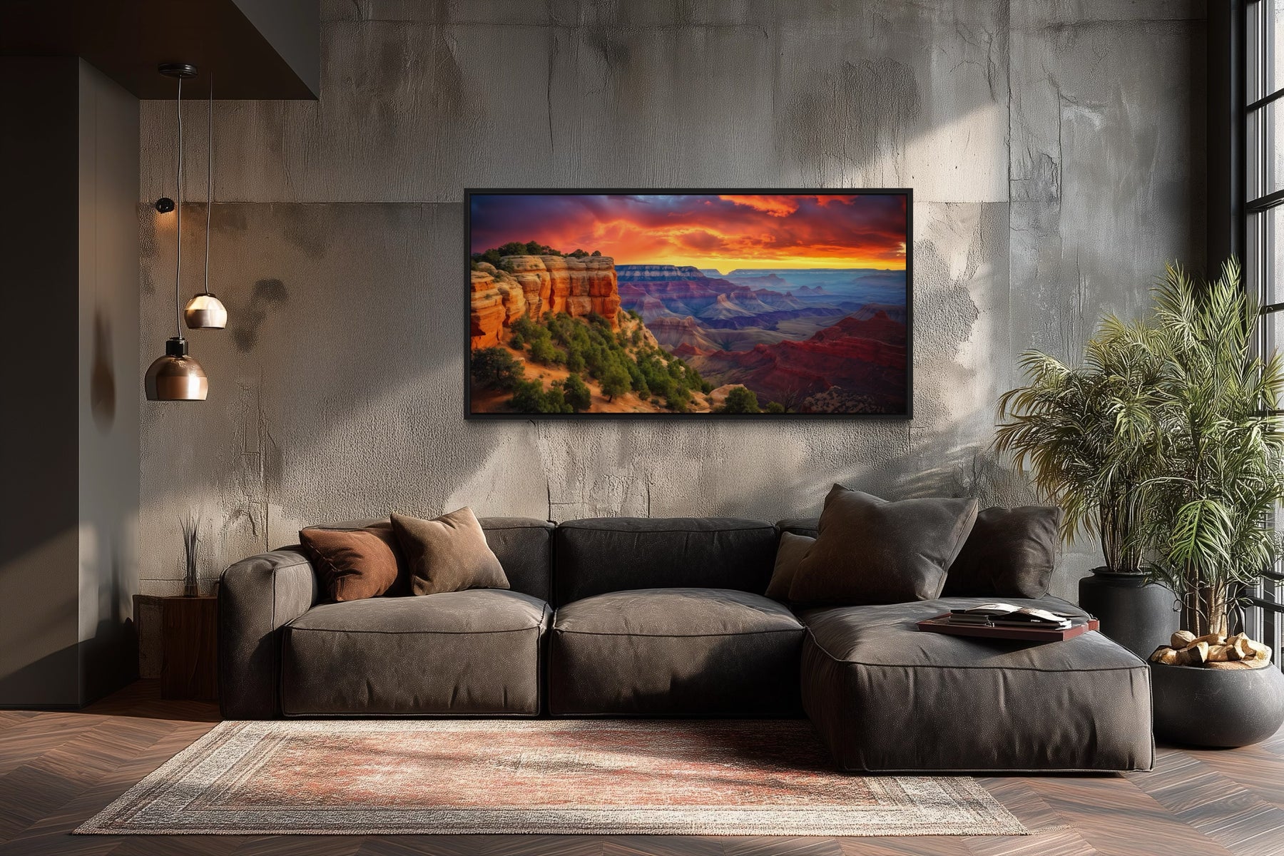 Grand Canyon Wall Art - Framed Sunset Canvas Print with Vibrant Colors
