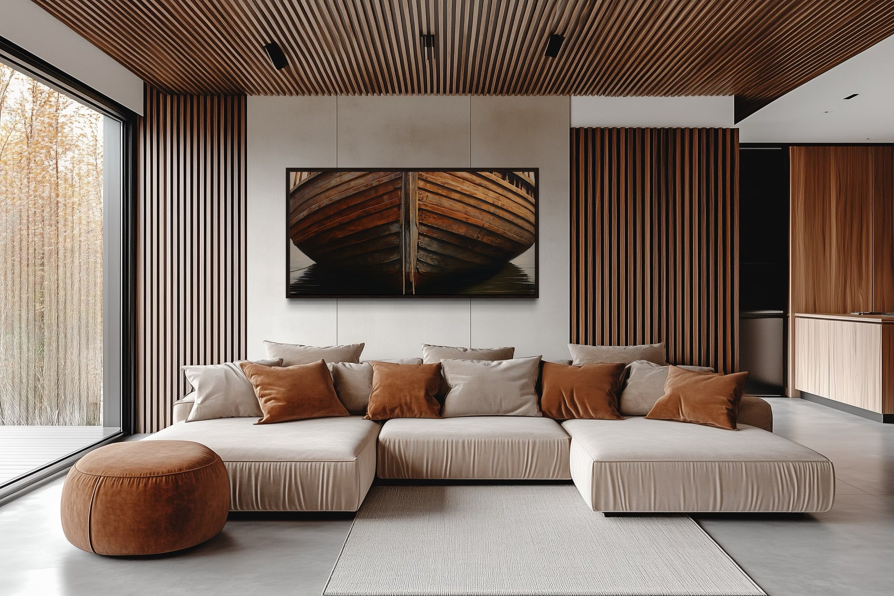 Wooden Boat Wall Art – Rustic Cabin Decor | Framed Canvas Print for Lake House