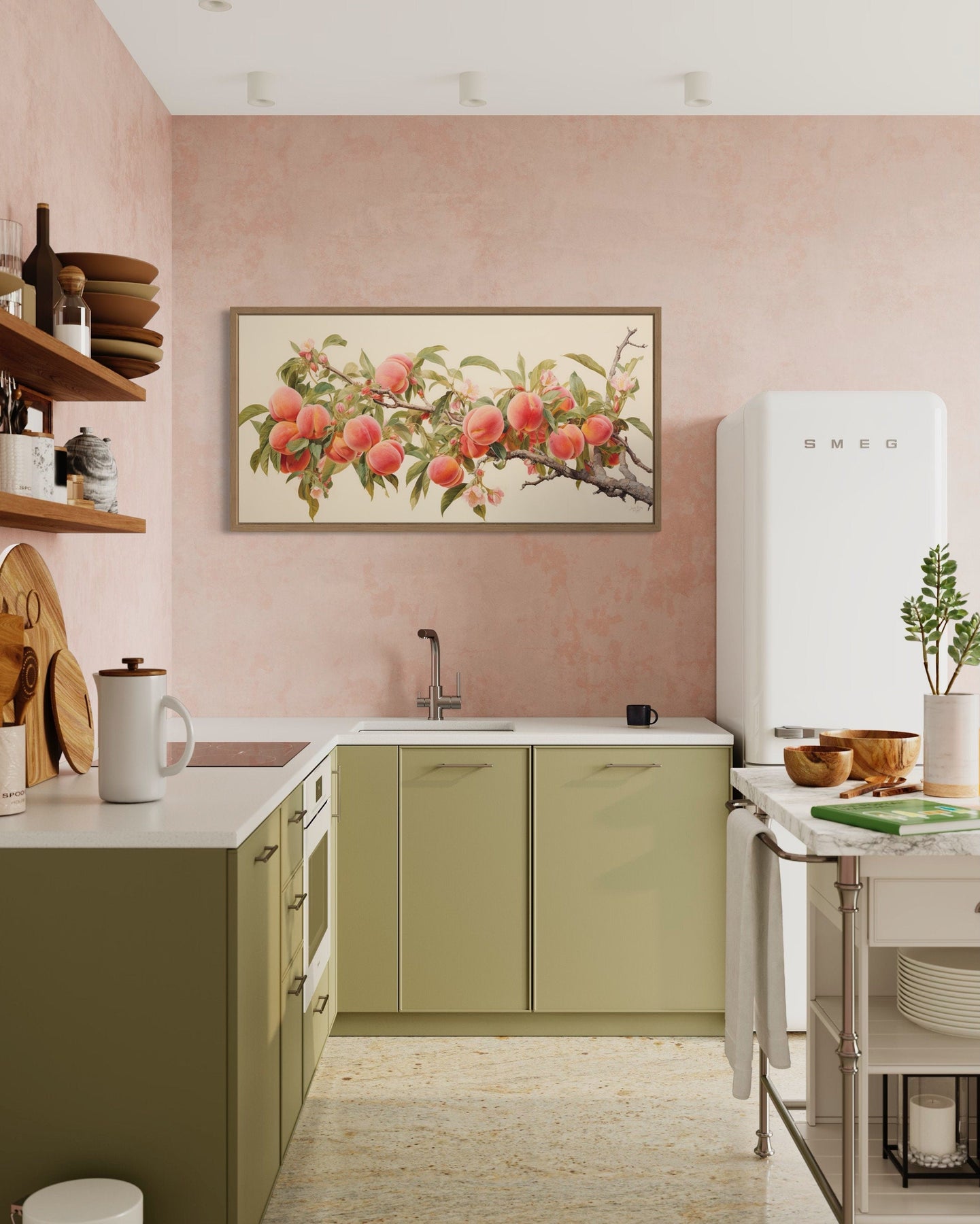 Peach Tree Wall Art – Rustic Wall Decor | Framed Canvas Print for Kitchen