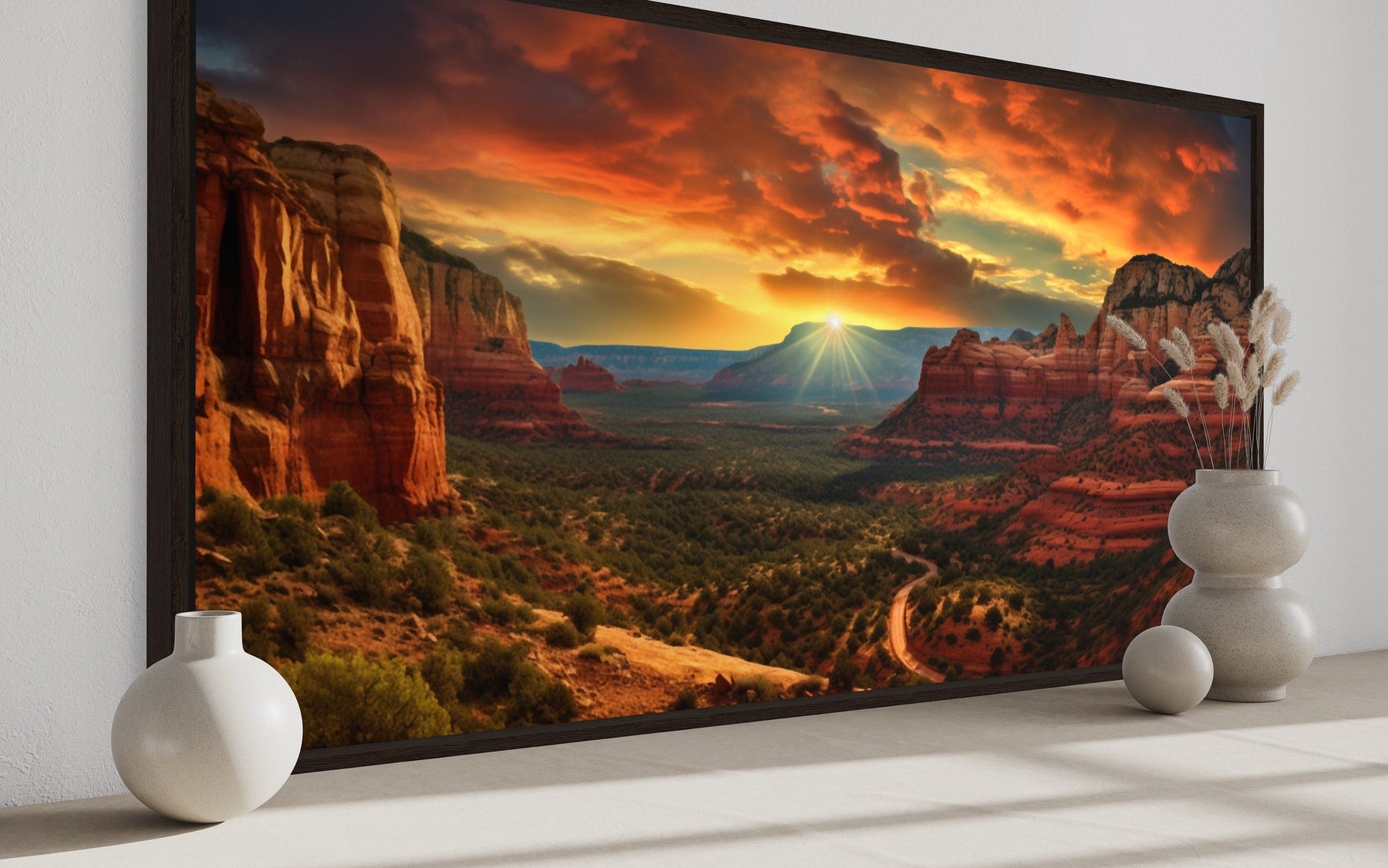 Sedona Sunset Canvas - Framed Southwest Wall Art with Vibrant Sunset Colors