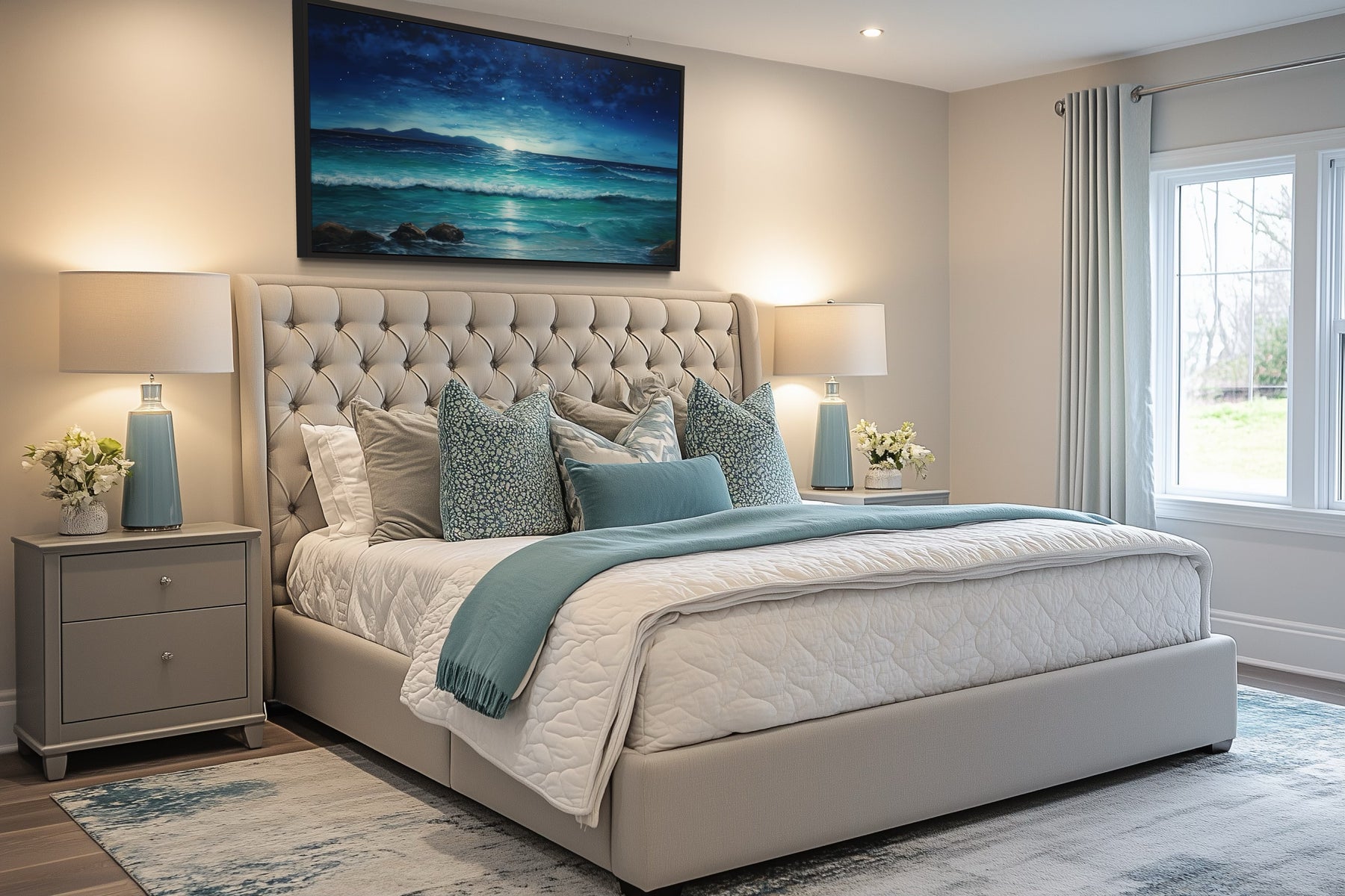 The color palette of this starry night wall art features rich navy blue tones, accented with the silvery glow of stars and soft highlights from the ocean’s surface. The deep blues create a calming foundation, while the luminous accents add depth and movement to the composition. Subtle gradients enhance the transition between the dark horizon and the lighter night sky, evoking a sense of wonder and tranquility. The contrast between the rich blues and delicate whites ensures a visually stunning effect that complements a range of decor styles. Whether paired with neutral tones or bold coastal elements, the colors enhance the overall ambiance of the room. Complete your decor with this beautifully balanced starry night wall art.