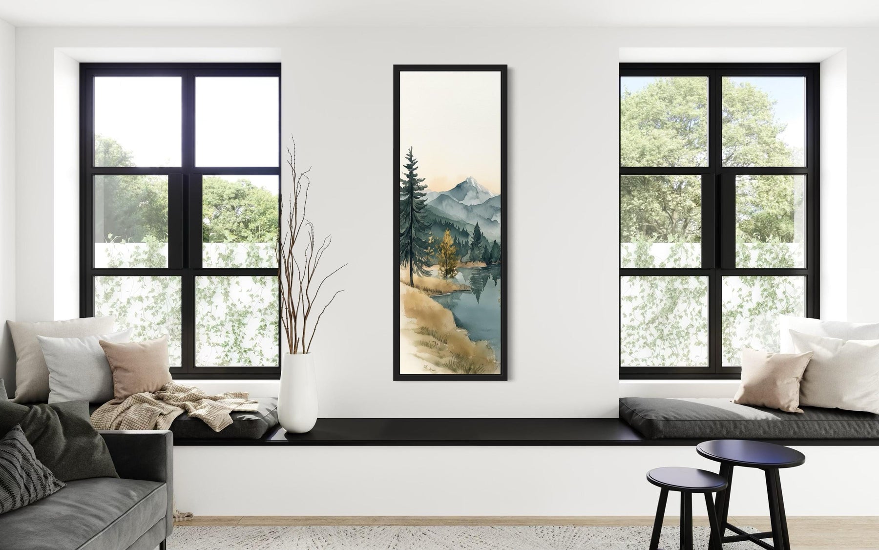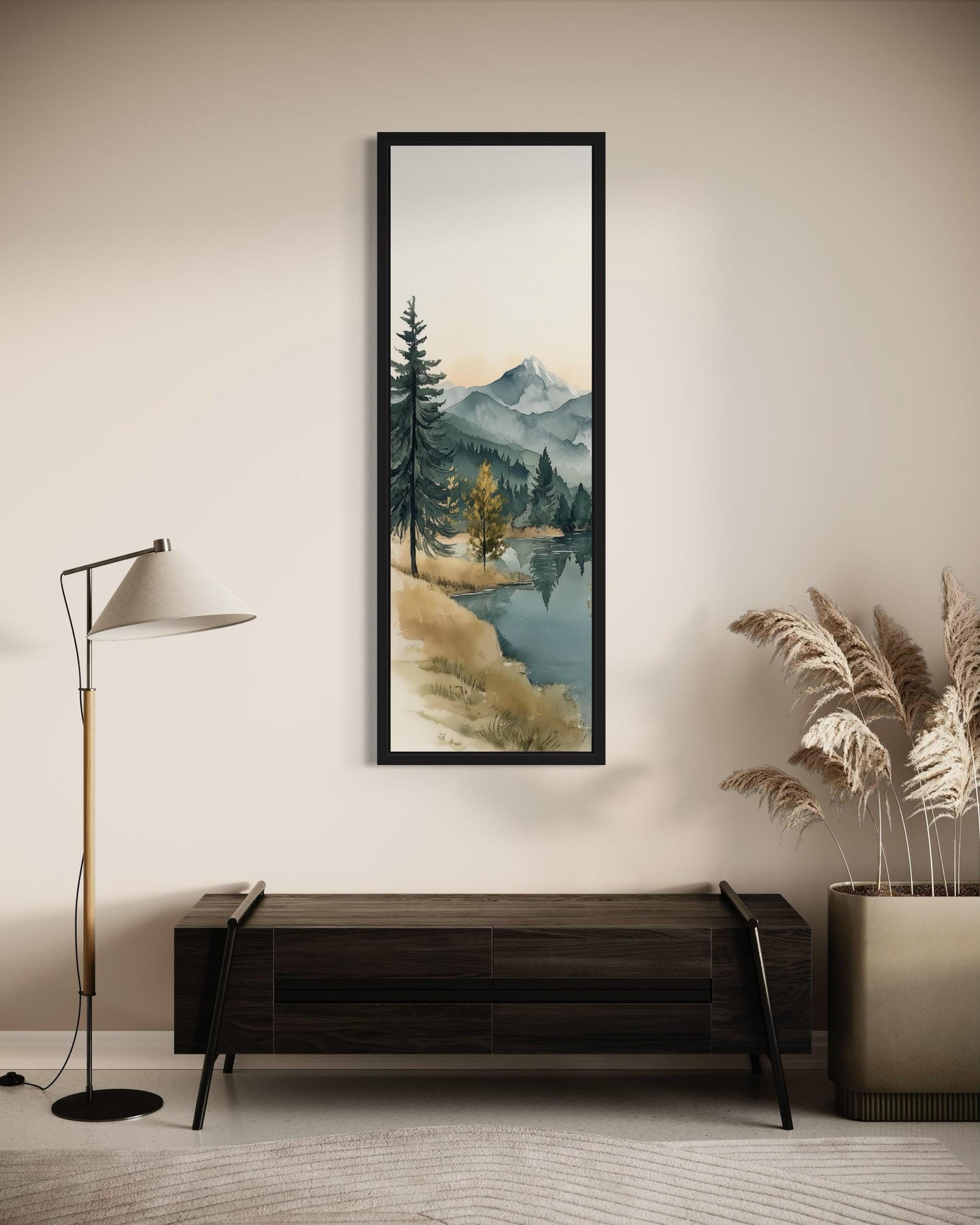 Our Tall Narrow Vertical Mountain Lake canvas wall art is best suited for rustic cabins and modern homes that embrace nature-inspired design. In rustic spaces, its mountain and lake imagery pairs perfectly with wood accents, stone fireplaces, and natural textiles, creating the feeling of a retreat within the forest. Its tall vertical format makes it ideal for entryways or stairwells, where it can emphasize height and guide the eye upward. In modern homes, this Tall Narrow Vertical painting provides a refreshing connection to nature, breaking up minimalist lines with organic scenery. Its calming imagery makes it a natural fit for living rooms, studies, or bedrooms designed as sanctuaries of peace. This Tall Narrow Vertical wall art is also an excellent choice for man caves with a love of wilderness, anchoring the room with a sense of rugged strength and tranquility. For dining areas, it adds a scenic charm that encourages warmth and conversation. The balance between rustic authenticity and modern clarity allows it to adapt to different interior styles while keeping its wilderness essence intact. With its serene lake and towering mountain presence, this artwork brings outdoor calm into indoor spaces. Our Tall Narrow Vertical Mountain Lake canvas wall art completes rustic and modern homes with a timeless view of natural tranquility.