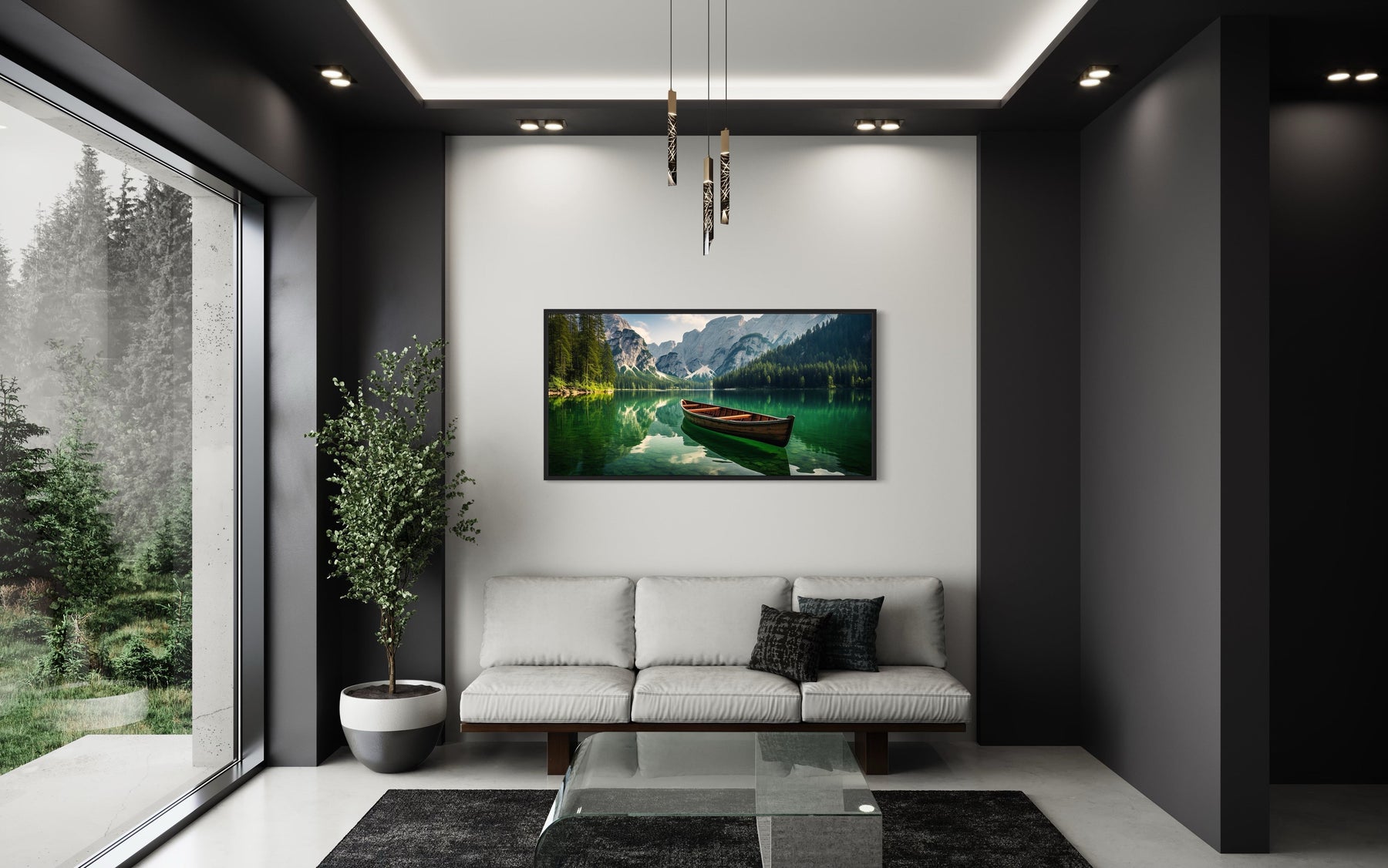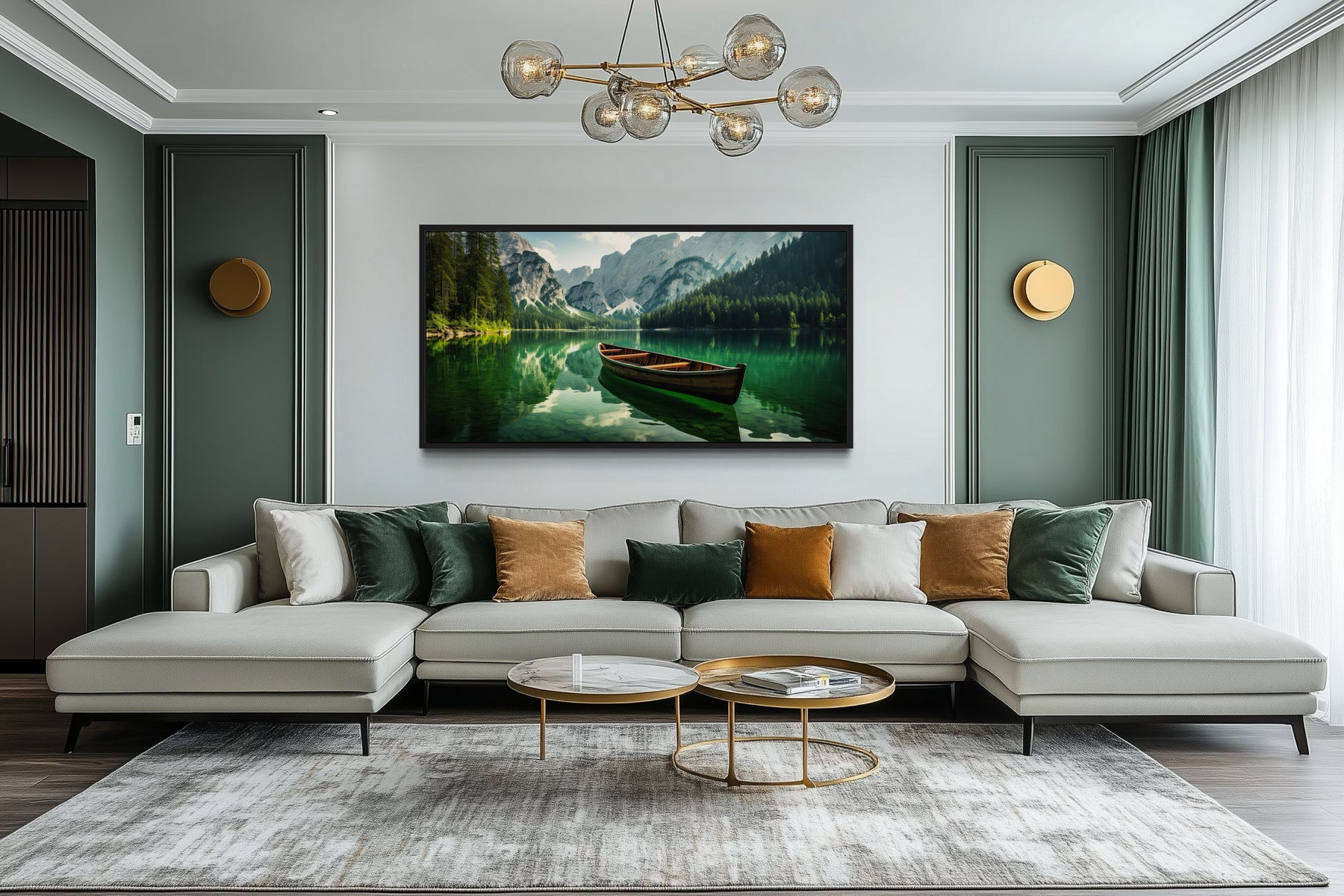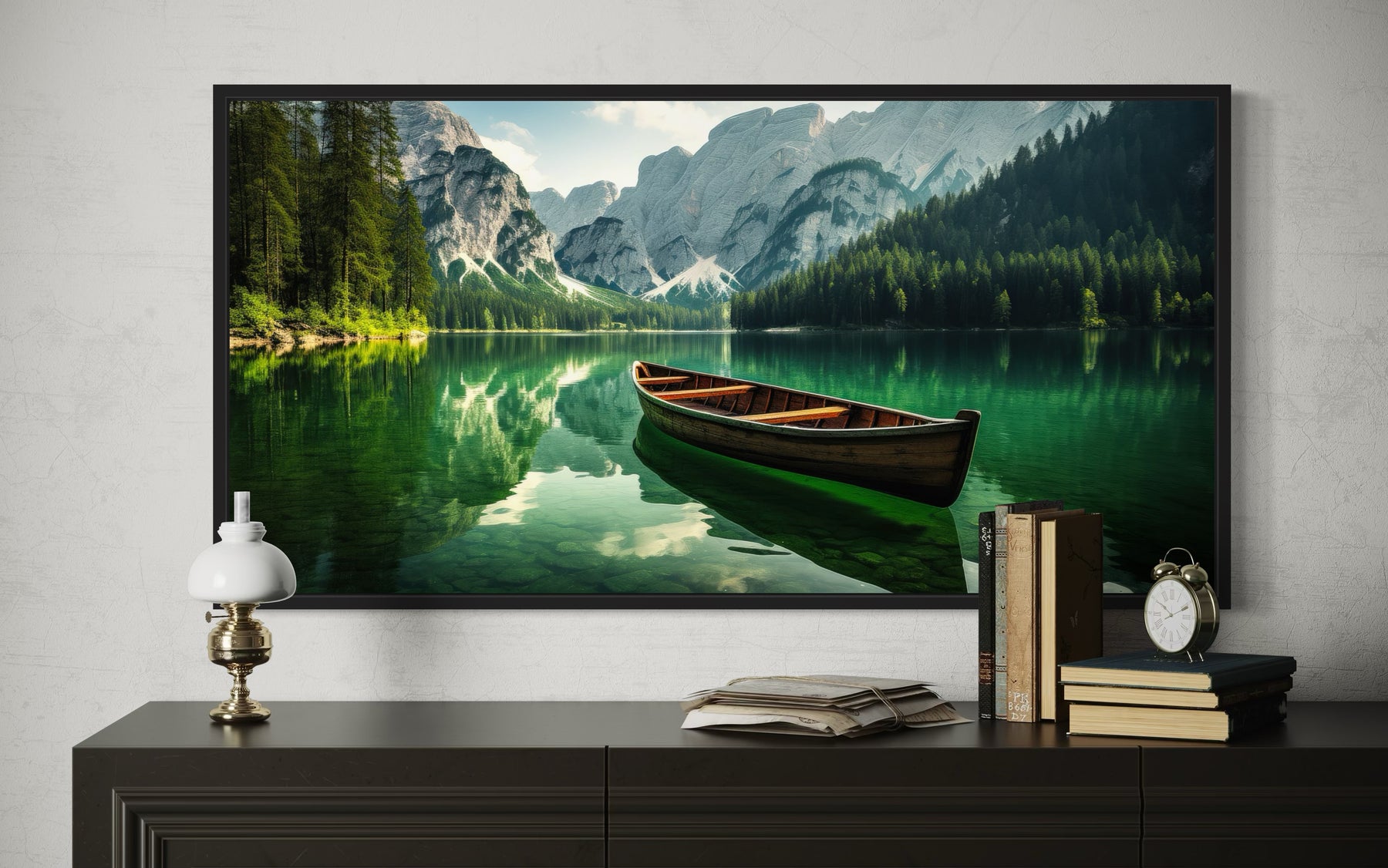 This wooden canoe canvas print is the perfect addition to homes that celebrate rustic, cabin-inspired, or modern nature decor. Its serene composition makes it an ideal choice for lake houses, mountain lodges, or living spaces with earthy, natural accents. The framed design adds a polished touch, seamlessly fitting into both traditional and contemporary interiors. Place it above a fireplace in a cozy cabin, or let it serve as a calming centerpiece in a modern living room. It pairs beautifully with wood textures, stone accents, and neutral furnishings, enhancing the charm of spaces designed to connect with nature. Whether displayed in an entryway, bedroom, or reading nook, this artwork brings the timeless beauty of the outdoors inside. Enrich your home with this emerald green lake wall decor, a celebration of still waters and the peaceful spirit of the wild.