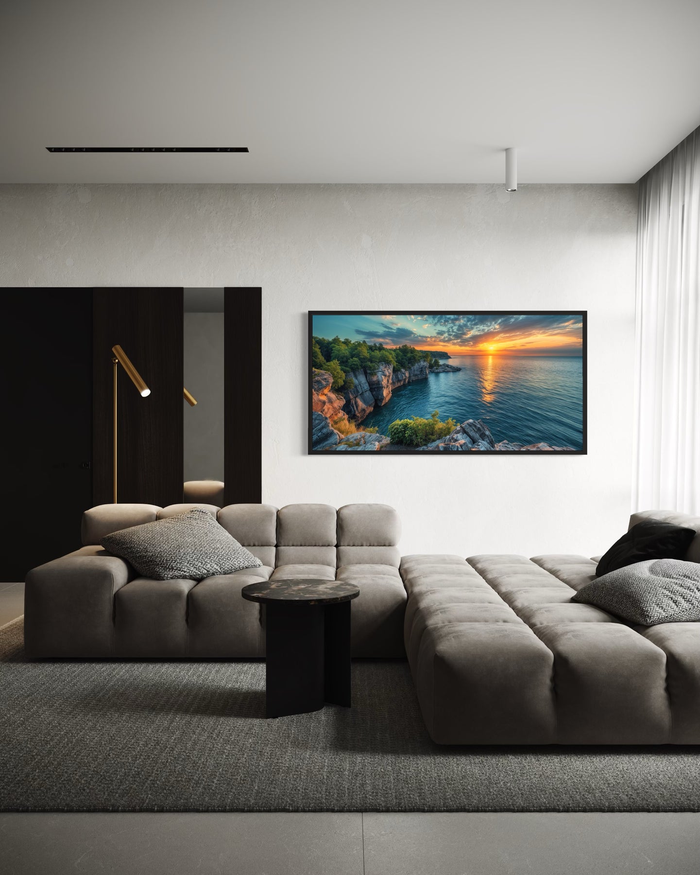 Lake Superior Sunset Canvas - Framed Wall Art | Panoramic Lake Landscape Print