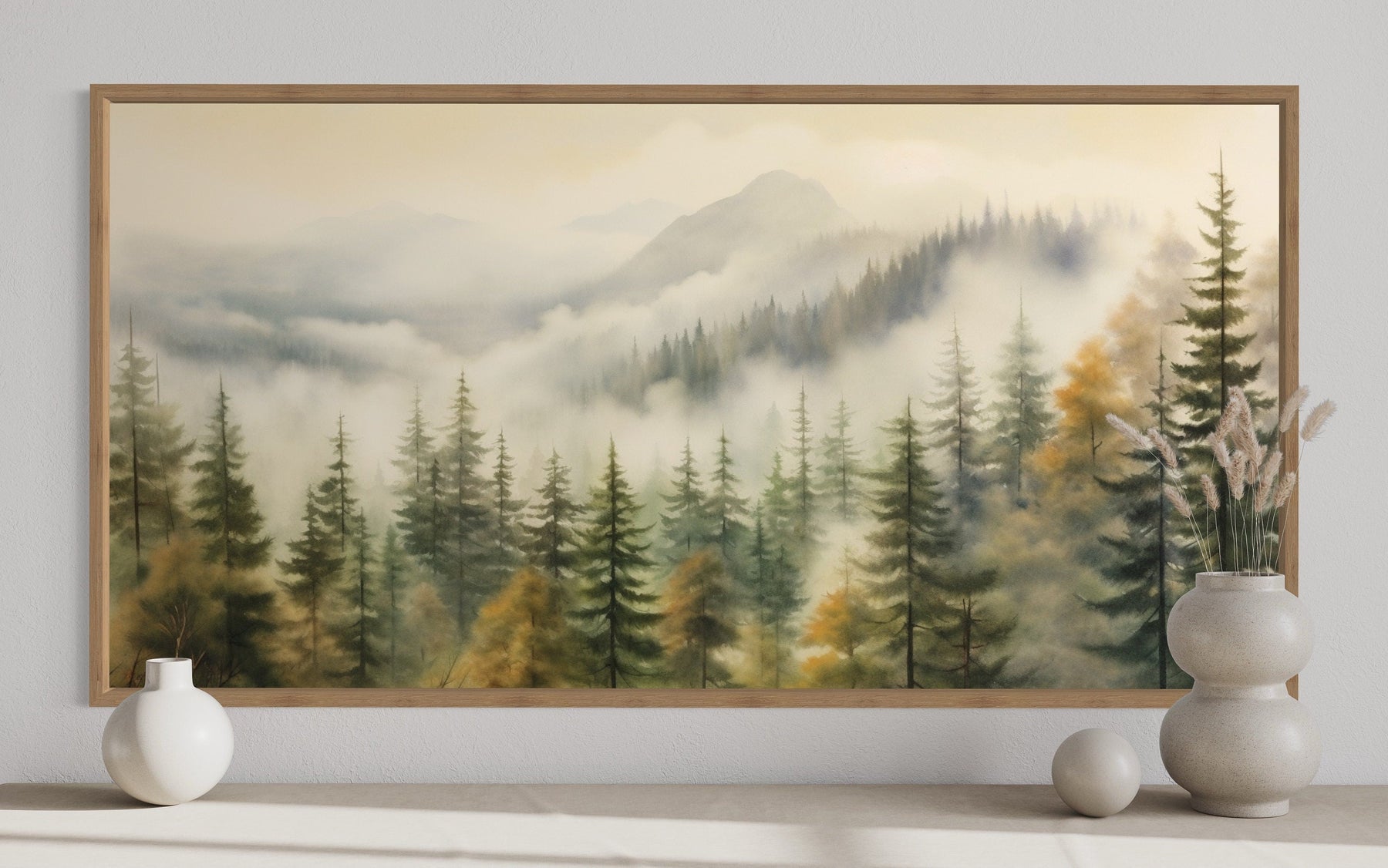 Our sage green foggy fir tree forest wall art brings the serene beauty of a misty forest into your home. This captivating canvas print depicts a tranquil scene of tall fir trees shrouded in layers of soft fog, evoking the calm and mystery of the wilderness. The artwork’s gentle transitions and natural textures create a harmonious balance between rustic charm and modern elegance. Designed as a framed canvas, it offers a timeless appeal that transports you to a peaceful woodland retreat. The intricate details of the trees and the hazy ambiance give this piece a depth that captivates the eye. Perfect for those who appreciate nature-inspired art, this forest painting is more than decor—it’s an invitation to pause and reflect. Elevate your walls with the calming essence of this sage green forest canvas wall art.
