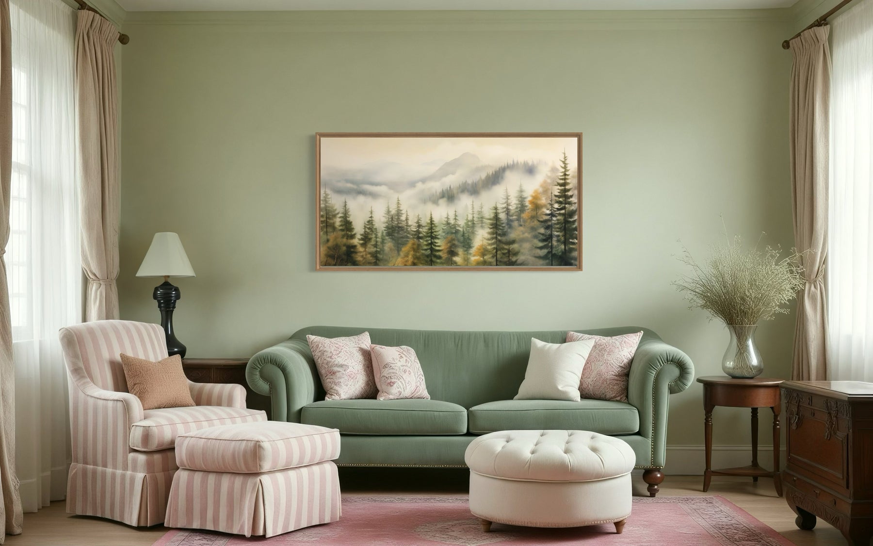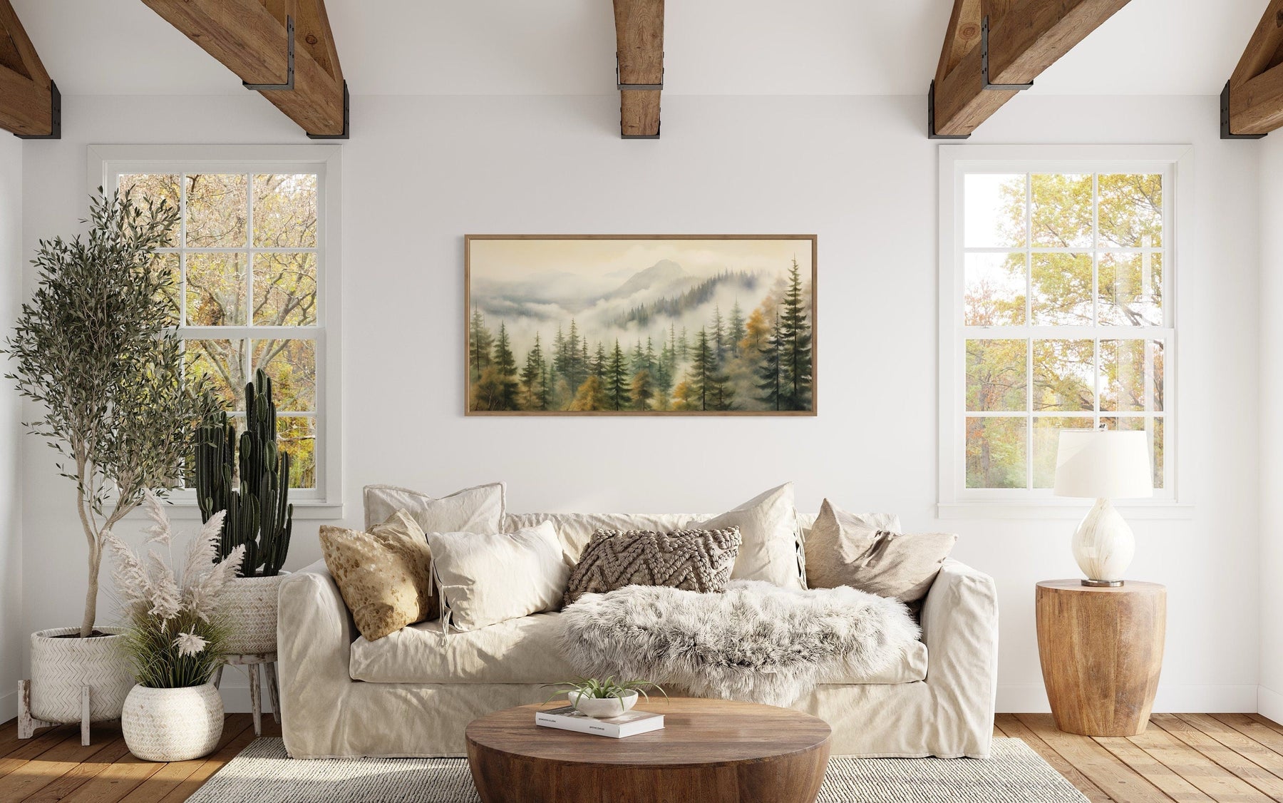 Perfect for rustic, farmhouse, or cabin-inspired interiors, this sage green foggy forest wall decor transforms your space into a tranquil woodland escape. It pairs beautifully with natural materials like wood, stone, and linen, making it a great addition to living rooms, bedrooms, or quiet reading corners. For cabin-style homes, this artwork amplifies the cozy, nature-connected ambiance. In farmhouse settings, its muted tones and rustic charm blend seamlessly with weathered furniture and warm textures. The misty forest theme also complements minimalist spaces, bringing a touch of softness and depth to clean, modern interiors. Ideal for nature enthusiasts, this canvas print allows you to bring the outdoors inside without overwhelming your decor. Whether hung above a mantel, bed, or sofa, this forest-inspired artwork sets a soothing and sophisticated tone. Transform your space with the serene beauty of this sage green forest wall art.