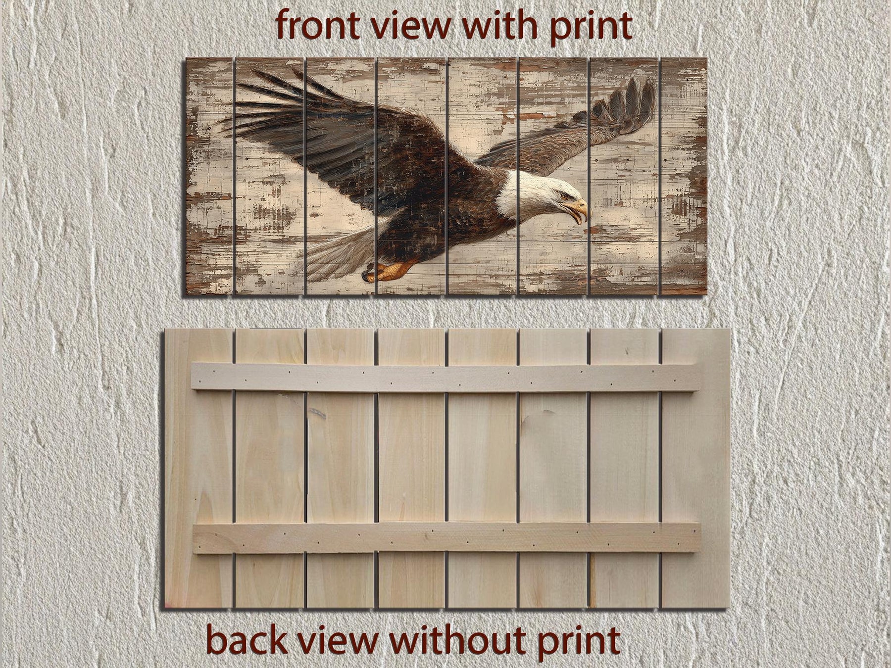 Décoration murale Aigle à tête blanche - Panneau en bois rustique vieilli | Illustration patriotique d'animaux sauvages