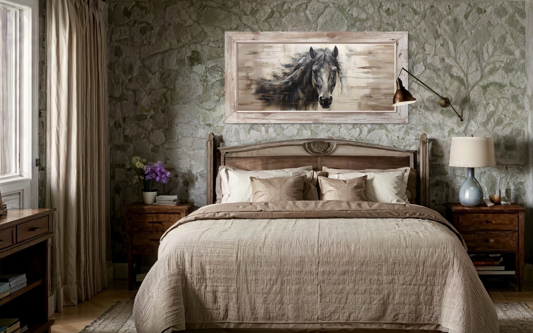 Cette œuvre d'art murale rustique représentant un cheval noir est idéale pour les maisons qui adoptent un décor rustique, de ferme ou traditionnel. Ses couleurs naturelles et son design texturé en font un choix parfait pour les salons confortables, les chambres sereines ou les entrées accueillantes. Le charme rustique et la présence élégante de l'œuvre d'art ajoutent une touche de sophistication et de nature à votre maison, créant une atmosphère chaleureuse et accueillante. Qu'elle soit exposée au-dessus d'une cheminée, le long d'un couloir ou dans un bureau, cette peinture de cheval noir rehausse votre décor avec sa beauté intemporelle et son élégance rustique.