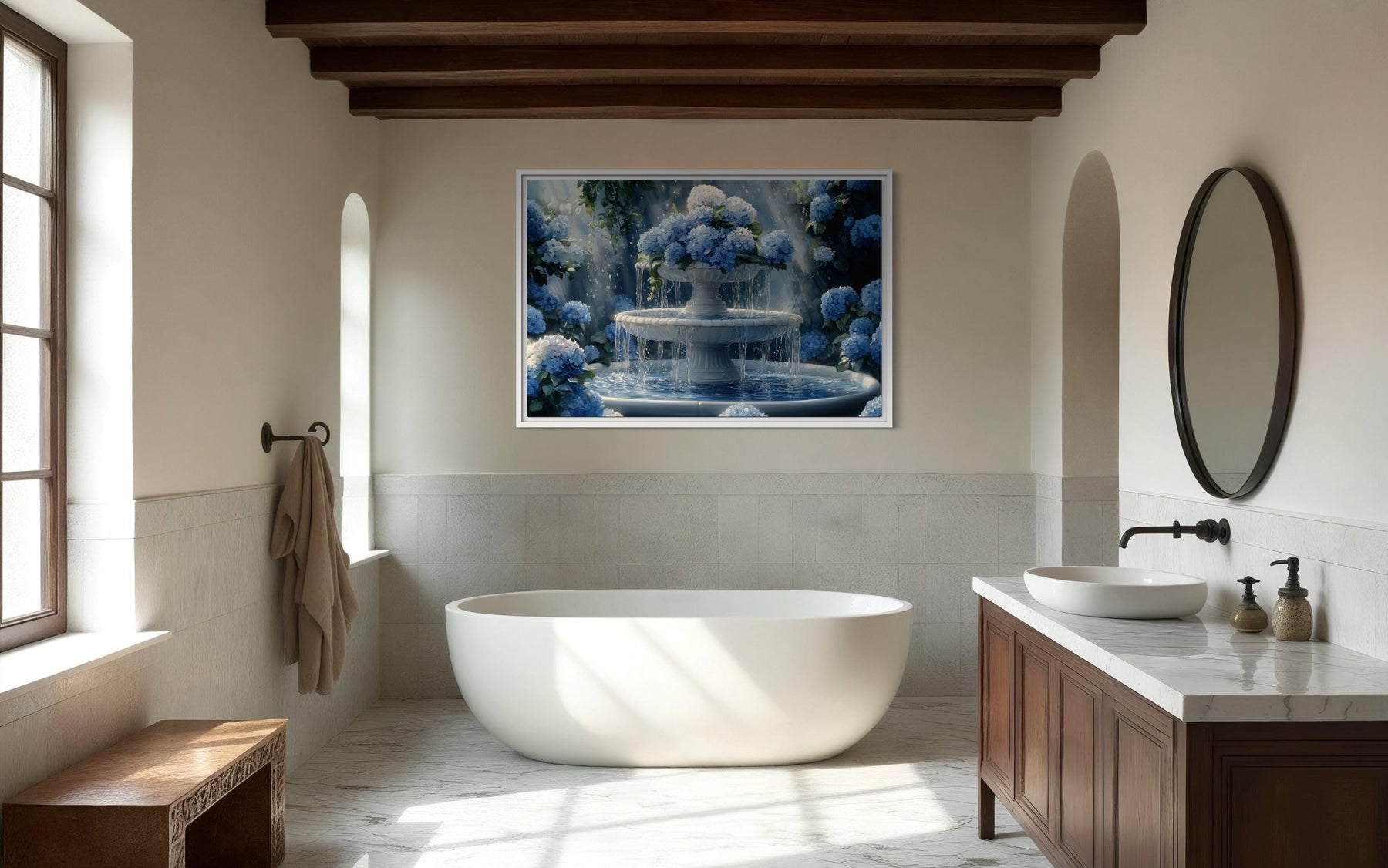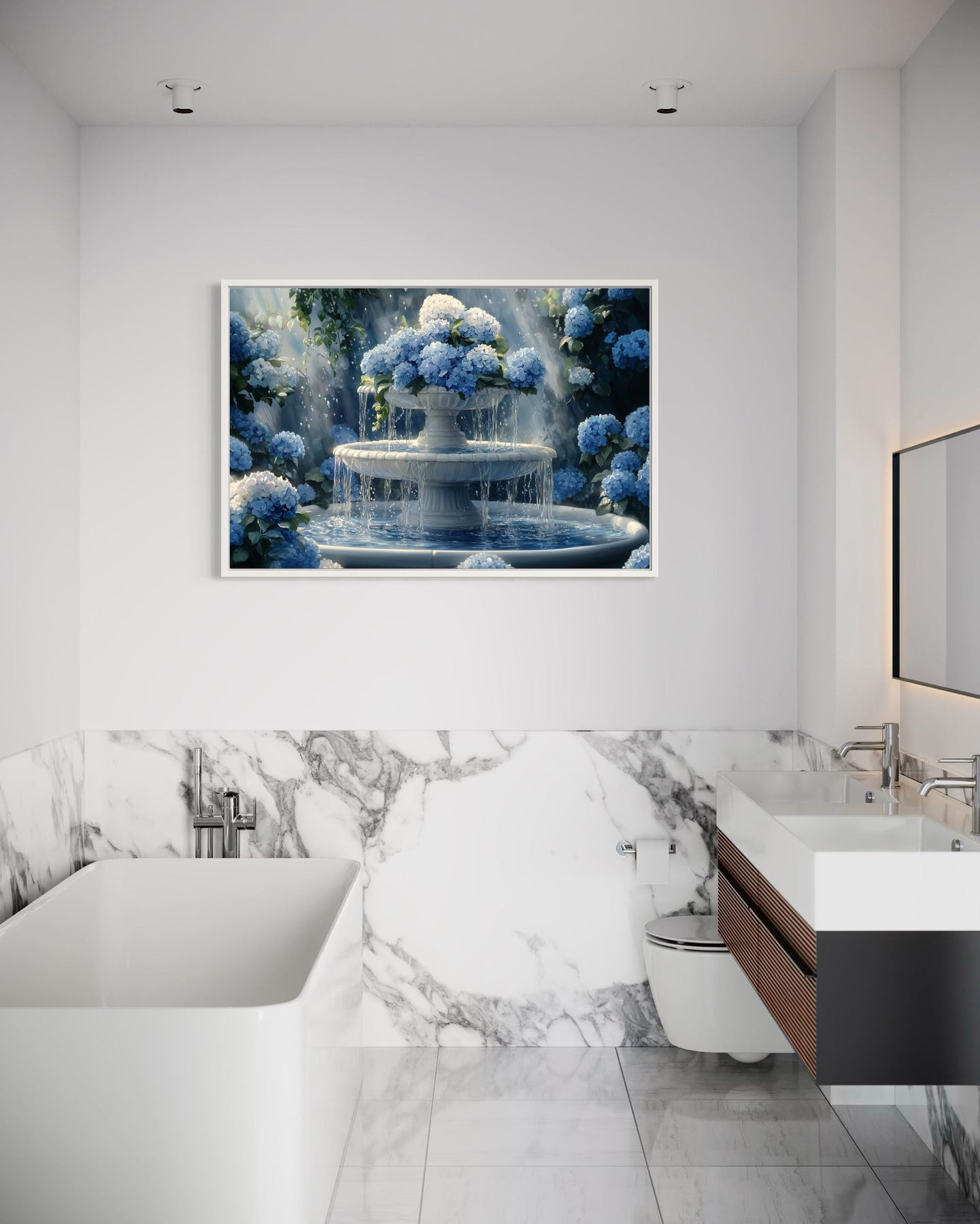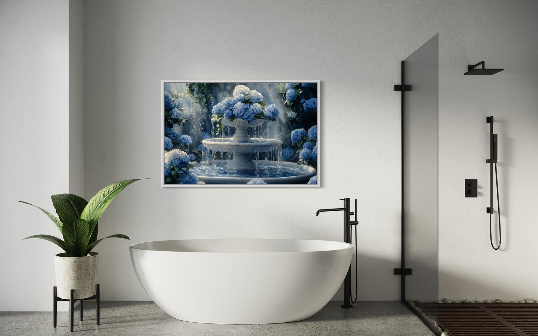 Blue Flowers Fountain Bathroom Canvas Wall Art