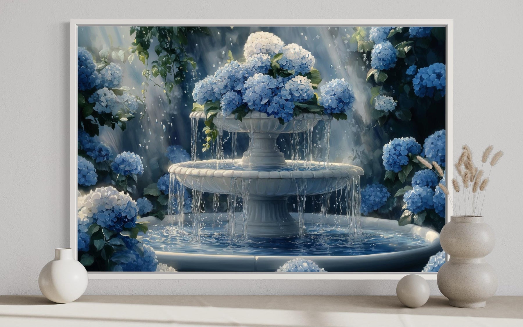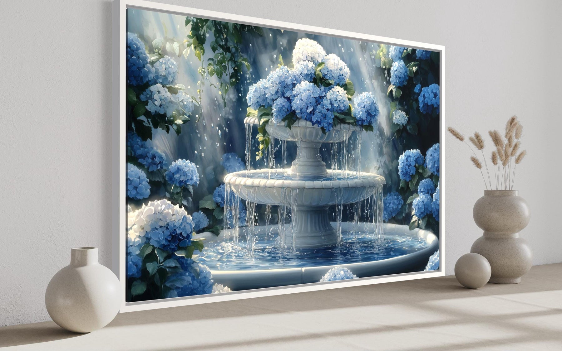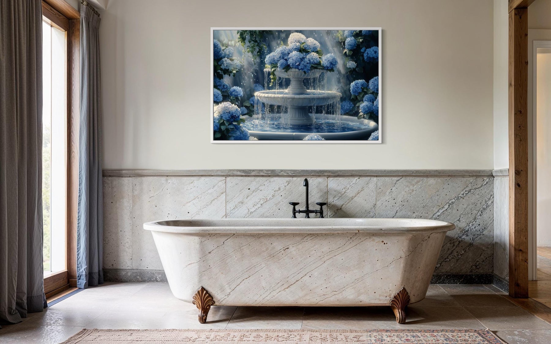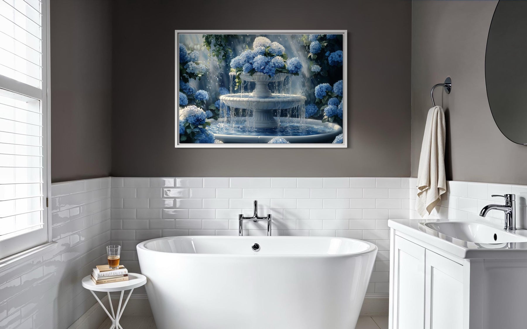 Blue Flowers Fountain Bathroom Canvas Wall Art