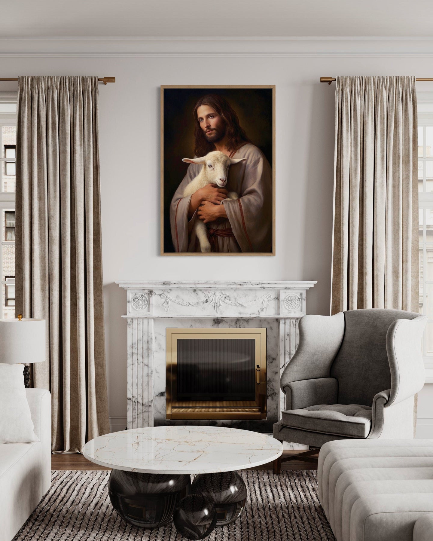 Cette toile murale représentant Jésus et l'agneau est un choix parfait pour les maisons qui adoptent des styles de décoration chrétiens, traditionnels ou rustiques. Elle ajoute une touche de foi et de sérénité à n'importe quelle pièce, ce qui la rend particulièrement adaptée aux espaces dédiés à la réflexion ou à la prière. Accrochez cette toile murale chrétienne dans un salon pour créer une atmosphère chaleureuse et accueillante qui encourage la paix et le confort. Dans une chambre à coucher, l'œuvre d'art peut servir de rappel quotidien de la foi et de l'orientation spirituelle, tandis que dans une salle de prière, elle peut inspirer une dévotion et une réflexion profondes. L'impression sur toile se marie à merveille avec des meubles en bois, des textiles doux et des éléments naturels, renforçant le sentiment général de tranquillité. Que vous cherchiez à décorer pour une occasion religieuse spécifique ou que vous souhaitiez intégrer un symbole durable de la foi dans votre maison, cette peinture Jésus et agneau est un incontournable.