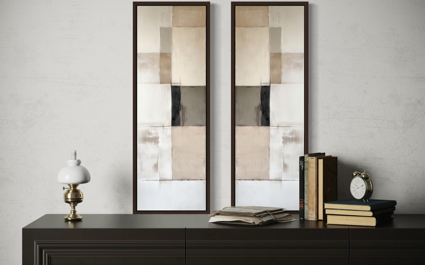 Lot de 2 tableaux muraux sur toile abstraits géométriques étroits et neutres
