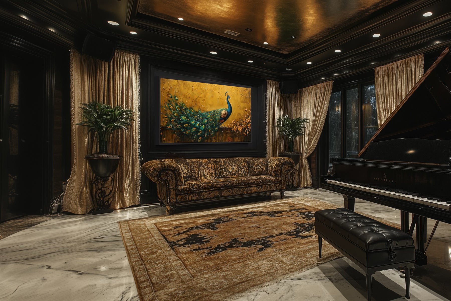 Embellissez votre espace avec notre luxueuse toile murale à motif de paon sur fond doré. Cette pièce captivante présente un paon royal sur fond doré riche, dégageant élégance et sophistication. Les détails complexes et les couleurs vibrantes donnent vie à cette peinture de paon, ce qui en fait un point focal saisissant pour n'importe quelle pièce. Parfaite pour ceux qui apprécient la décoration murale opulente, cette impression sur toile allie harmonieusement un design moderne à une touche de charme vintage. Transformez votre maison avec la beauté majestueuse de cette toile murale à motif de paon, ajoutant une touche de luxe à votre décor. Laissez ce chef-d'œuvre élever votre intérieur vers de nouveaux sommets.