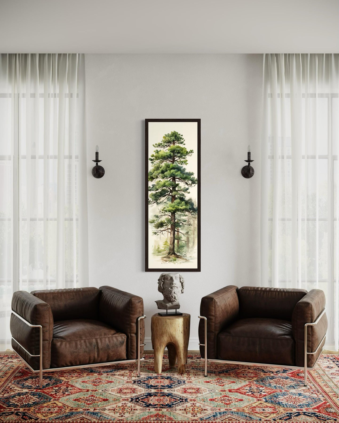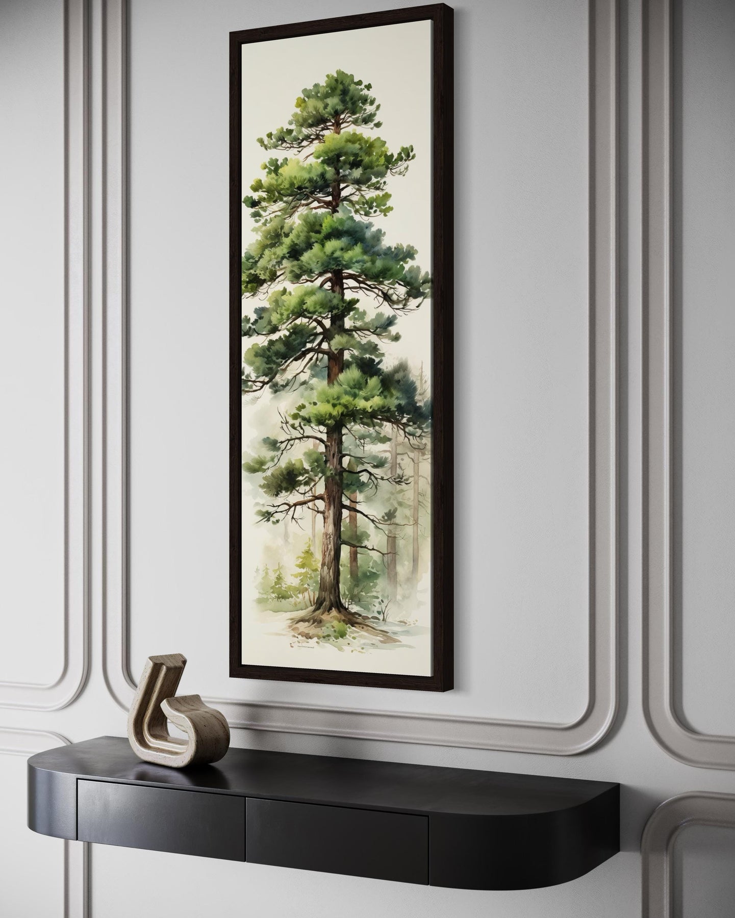 Notre tableau sur toile vertical étroit « Grand Pin » apporte le calme et la force d'un pin solitaire et imposant dans votre intérieur, avec un tableau serein qui célèbre la beauté des forêts sempervirentes. La composition met en valeur un pin gracieux et imposant, ses branches complexes et ses aiguilles texturées rendues avec une application de peinture soignée qui capture la dignité paisible de la nature. Un léger brouillard et des silhouettes lointaines de bois créent une profondeur subtile, tandis que des ombrages délicats évoquent l'air frais des matinées de montagne. Le format vertical de la toile reflète parfaitement la hauteur naturelle d'un pin, dirigeant le regard vers le haut et donnant aux pièces une sensation d'expansion paisible. Ce tableau représentant un grand pin allie inspiration rustique et élégance contemporaine, ce qui le rend idéal pour tous les amoureux de paysages tranquilles. Imprimé sur une toile de haute qualité, il préserve des couleurs riches et des détails fins, garantissant que l'œuvre d'art reste un élément durable de votre espace. Admiré comme un symbole d'endurance ou comme un point focal apaisant, il apporte la magie paisible du plein air à l'intérieur. Prêt à accrocher et conçu pour une beauté durable, le décor mural vertical étroit « Grand Pin » transforme les espaces quotidiens en refuges forestiers sereins. Avec une grâce naturelle durable, cette impression sur toile verticale étroite « Grand Pin » maintient la paix de la forêt toute l'année.