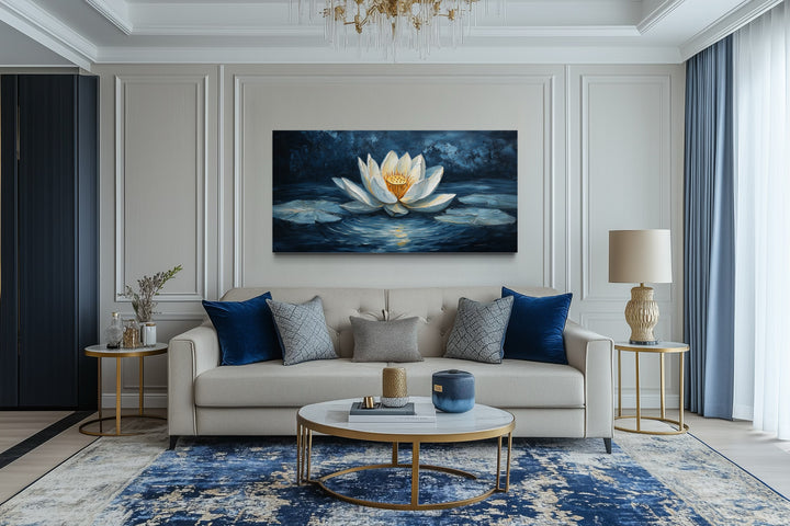 Fleur de lotus blanche sur fond bleu marine Décoration murale zen