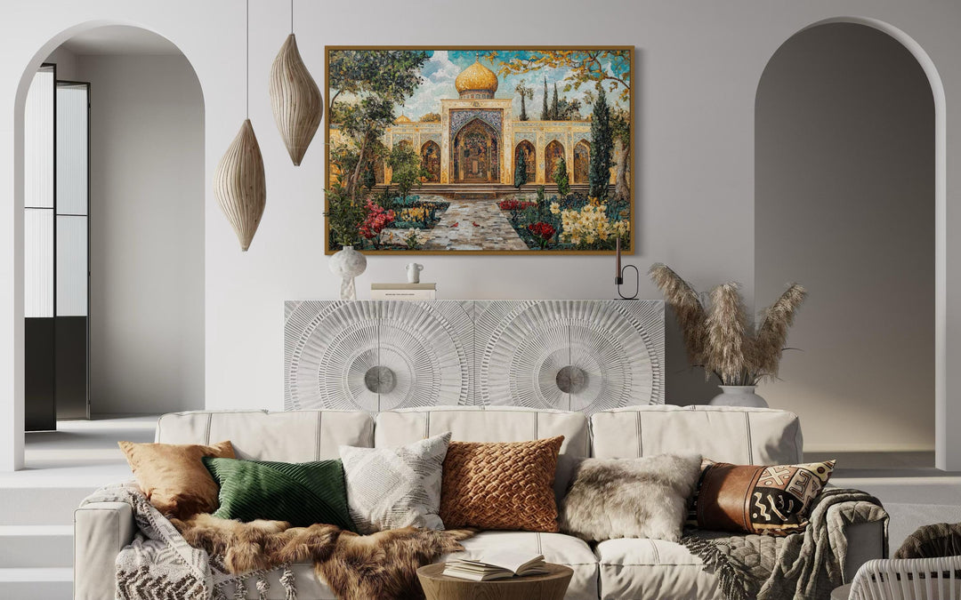 Notre décoration murale du Moyen-Orient est idéale pour une variété d'environnements domestiques, des appartements urbains modernes aux élégantes maisons de banlieue et aux villas luxueuses. Que vous préfériez la beauté sereine de l'architecture du Moyen-Orient ou l'énergie vibrante d'un bazar animé, nos peintures du Moyen-Orient offrent un moyen élégant et percutant d'enrichir votre espace de vie. Ces œuvres d'art sont parfaites pour créer un point focal dans n'importe quelle pièce, imprégnant votre maison de la richesse culturelle et du patrimoine artistique du Moyen-Orient. Laissez notre art mural en toile encadrée du Moyen-Orient transformer votre espace, en ajoutant une touche de sophistication exotique et de beauté intemporelle qui reflète votre appréciation pour l'art diversifié et significatif. Chaque pièce, qu'il s'agisse d'une représentation d'art mural traditionnel sur tapis, de poteries complexes ou de paysages époustouflants, raconte l'histoire d'une région imprégnée d'histoire et de culture musulmane, faisant de votre maison une toile d'art mondial.