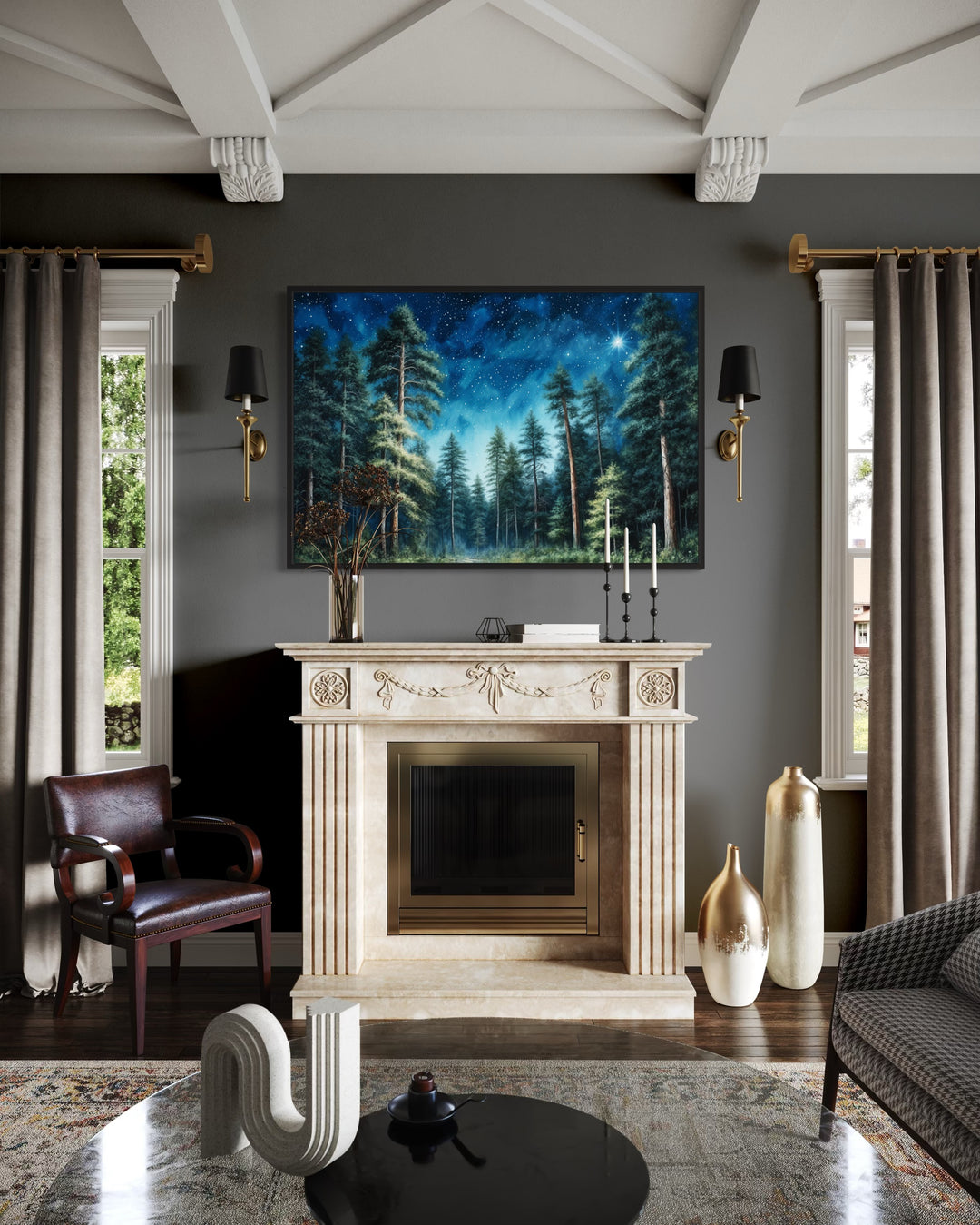 Notre décoration murale de ciel nocturne fusionne de superbes scènes célestes avec des paysages variés pour créer une ambiance saisissante et paisible. Des déserts solitaires parsemés de cactus sous une vaste Voie lactée aux forêts luxuriantes baignées d'un doux clair de lune, ces œuvres d'art célèbrent la beauté de la nuit qui se déroule sur la terre. Le contraste des bleus profonds, des blancs éclatants et des silhouettes naturelles apporte une qualité onirique à n'importe quel espace. Ces pièces ajoutent de la profondeur et du calme aux salons, aux coins de lecture ou aux bureaux, ce qui les rend idéales pour tous ceux qui trouvent la paix sous les étoiles. La collection comprend également des cieux étendus s'étendant sur des lacs tranquilles, où les reflets de la lune créent un équilibre fascinant entre la terre et le ciel. Nos œuvres d'art de ciel nocturne sont conçues pour les amoureux de la nature, les astronomes et tous ceux qui recherchent la magie du monde nocturne. Avec des dégradés doux et des détails complexes, ces toiles transforment votre maison en un havre de calme et de beauté. Chaque scène devient une célébration tranquille du charme sans fin de la nuit.