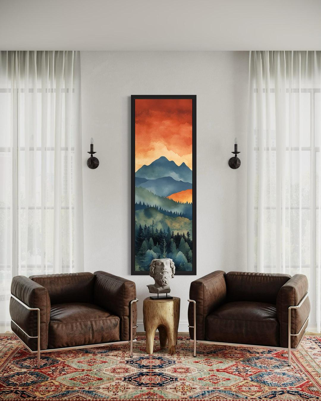 Aussi polyvalentes que belles, ces peintures de montagne s'adaptent facilement à divers styles d'intérieur. Elles font écho au charme de l'esthétique vintage lorsqu'elles représentent des paysages classiques et s'alignent sur les goûts contemporains lorsqu'elles présentent des interprétations modernes et abstraites. La décoration murale de montagne invite la tranquillité de la nature sauvage isolée dans les habitations urbaines, ce qui en fait un choix parfait pour ceux qui aspirent au calme des panoramas lointains ou à la nostalgie des aventures passées. Elle plaît aux randonneurs passionnés, aux rêveurs et à tous ceux qui apprécient la quiétude qu'évoquent les terrains montagneux.