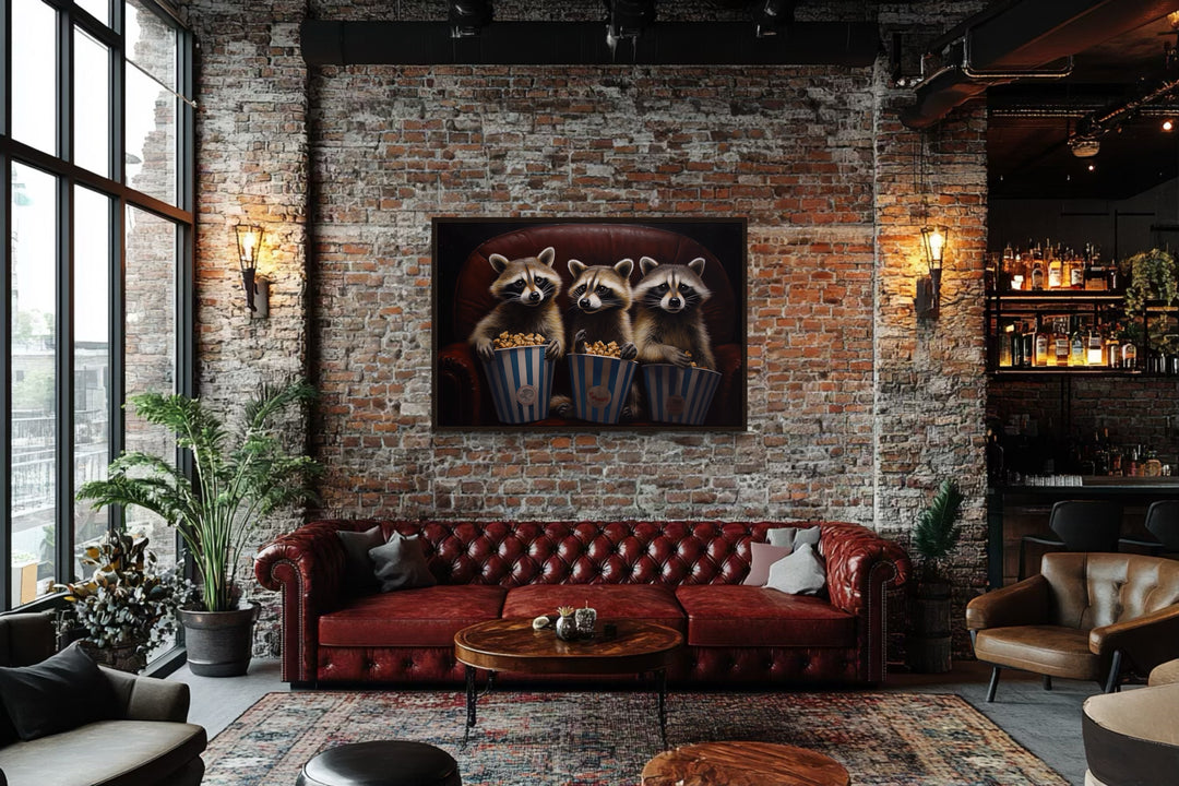 Notre collection d'art mural sur toile de raton laveur capture l'esprit fantaisiste et ludique des ratons laveurs dans une variété de décors charmants. Des portraits charmants aux scènes hilarantes de ratons laveurs regardant des films et mangeant du pop-corn, jouant au poker, faisant du bateau ou même assis sur les toilettes, chaque pièce vous fait sourire. Les détails complexes et les couleurs vibrantes de ces peintures de ratons laveurs en font un ajout parfait à toute maison qui aime célébrer ces créatures espiègles. Que vous préfériez un portrait victorien classique d'un raton laveur ou une représentation plus humoristique, notre collection offre quelque chose pour chaque passionné de raton laveur.