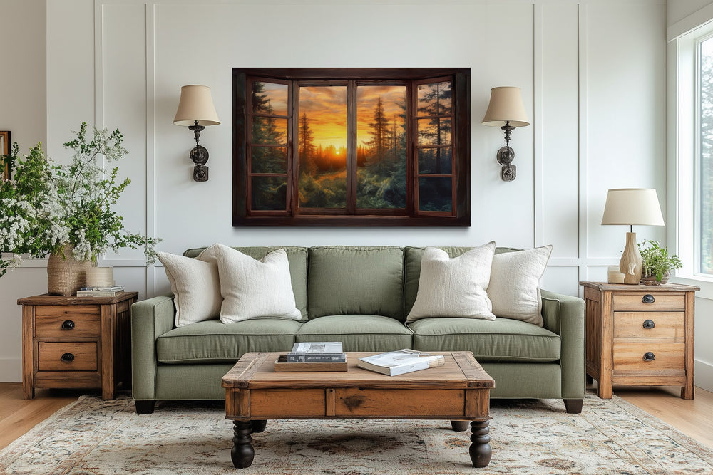 Transformez n'importe quelle pièce en sanctuaire avec notre art mural de fenêtre, conçu pour ouvrir votre espace à la beauté de l'extérieur. La collection de tableaux avec cadre de fenêtre apporte la tranquillité de la nature directement dans votre maison, parfaite pour les pièces sans fenêtres ou les espaces qui pourraient bénéficier d'une touche d'extérieur. Des collines vallonnées d'une ferme sereine aux sommets escarpés de montagnes majestueuses, chaque tableau de fenêtre vous invite à contempler un autre monde, offrant un sentiment de liberté et d'expansion aux murs qu'ils ornent. Idéales pour les citadins en quête d'un morceau de campagne ou les propriétaires de chalets cherchant à ajouter une vue différente à leurs retraites rustiques, ces œuvres d'art sauront captiver et inspirer.