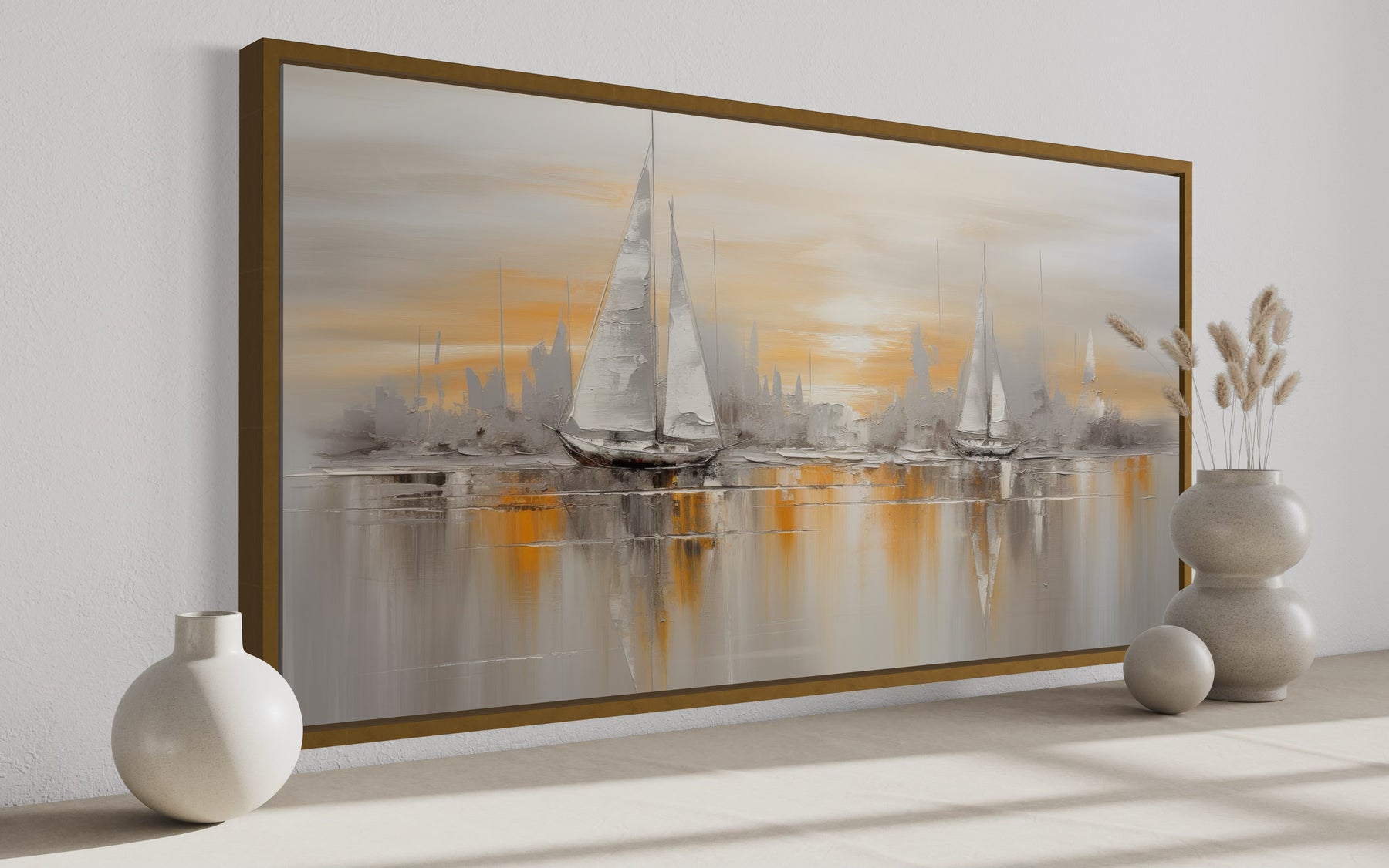 Tableau abstrait de voiliers – Peinture moderne de voiliers | Toile encadrée style côtier