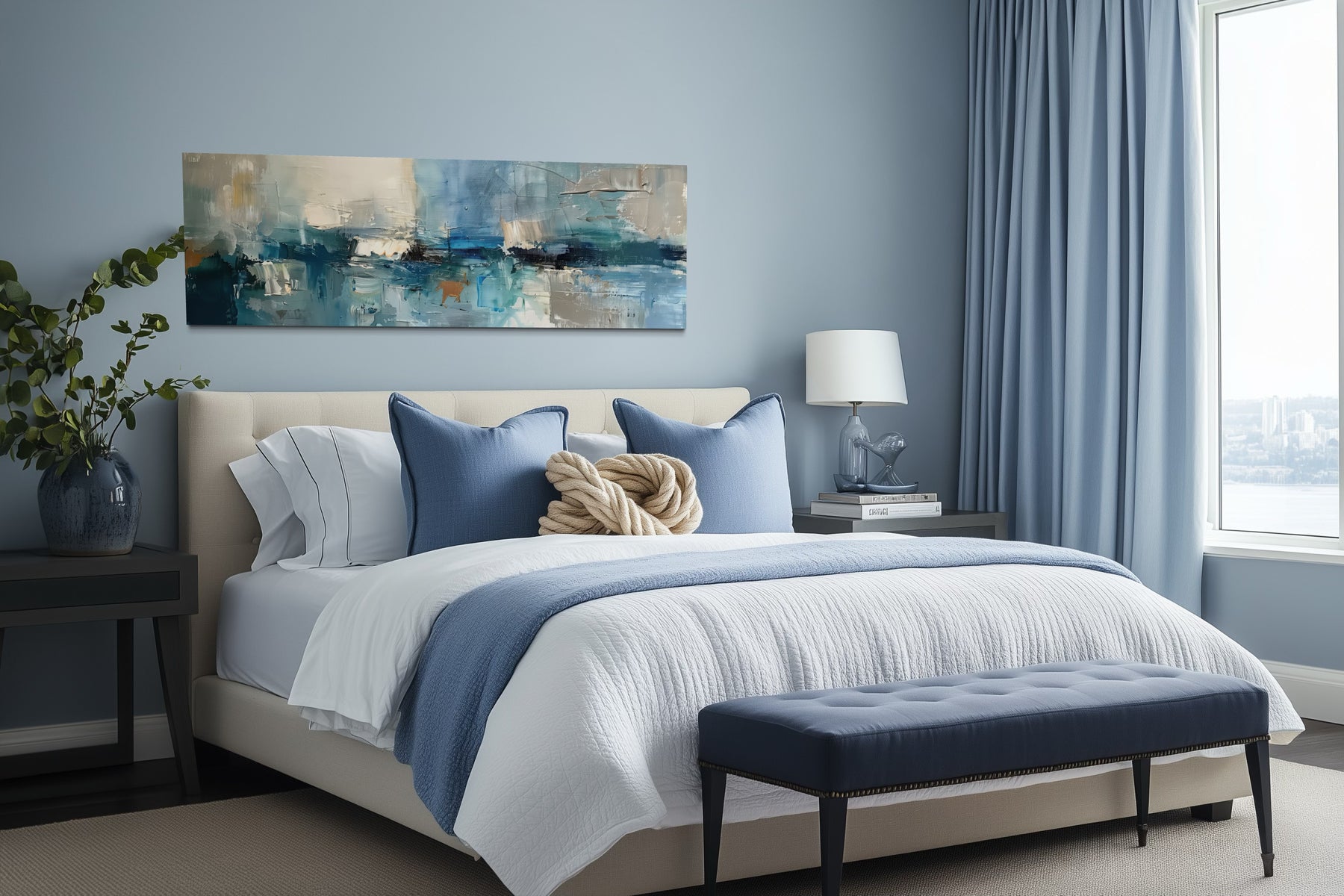 Bleu Gris Aqua Calme Paisible Abstrait Au-dessus Du Lit Long Étroit Art Mural
