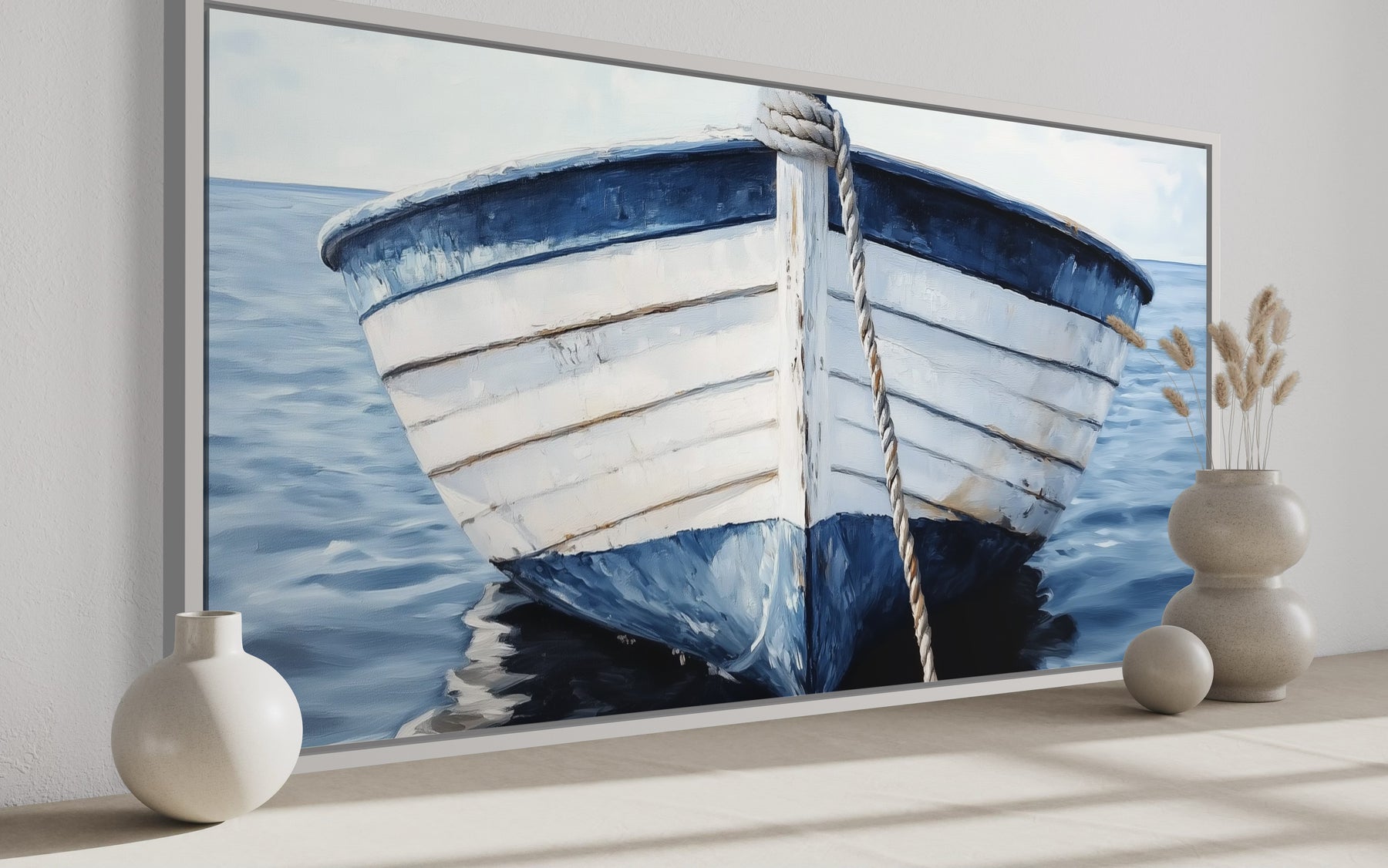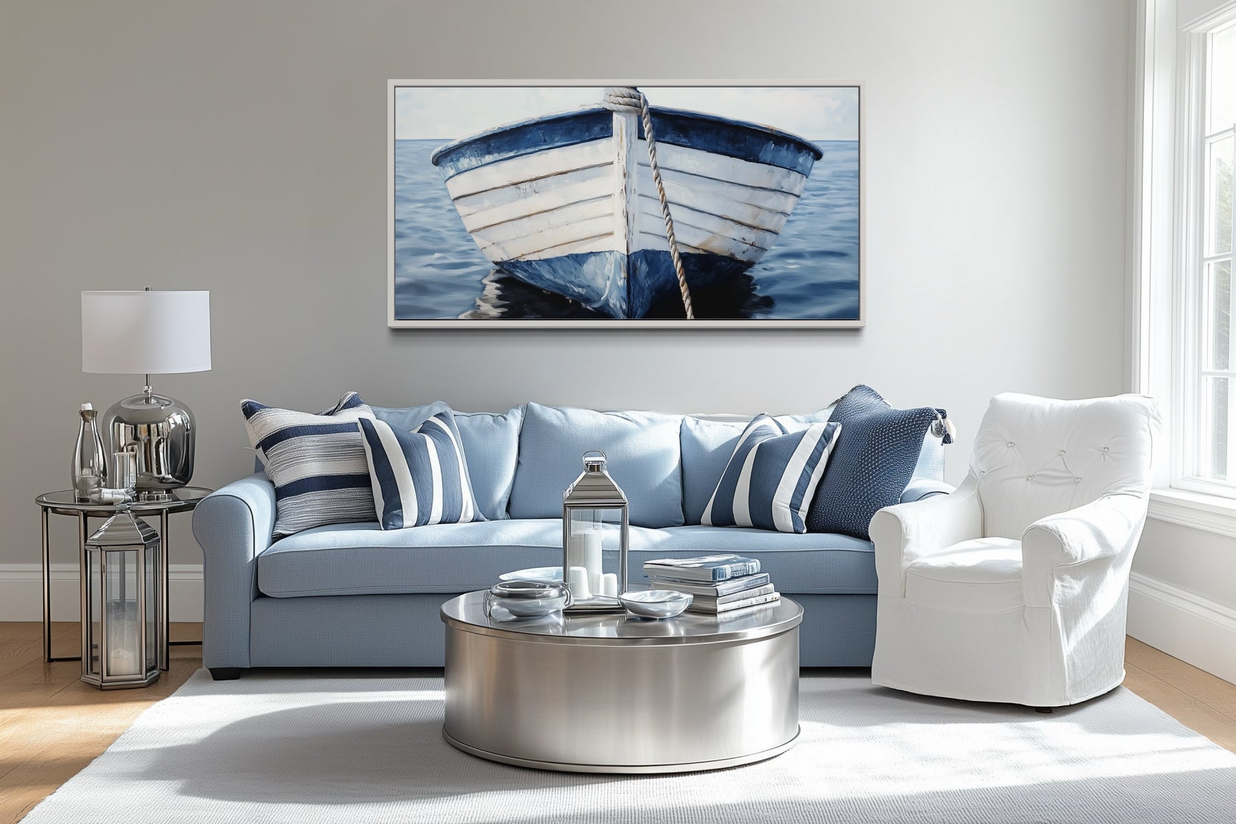 Décoration murale rustique sur le thème des bateaux – Décoration murale bateau bleu et blanc | Toile imprimée sur le thème nautique côtier