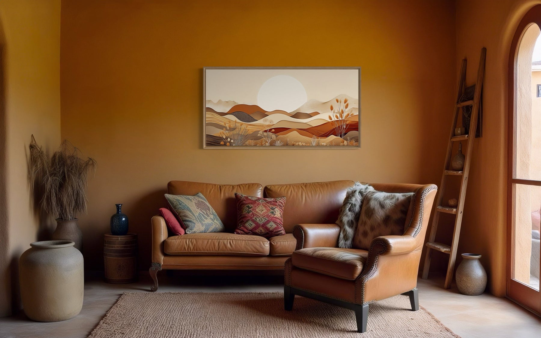 Tableau bohème désertique - Toile encadrée de paysage milieu du siècle aux tons neutres de la terre