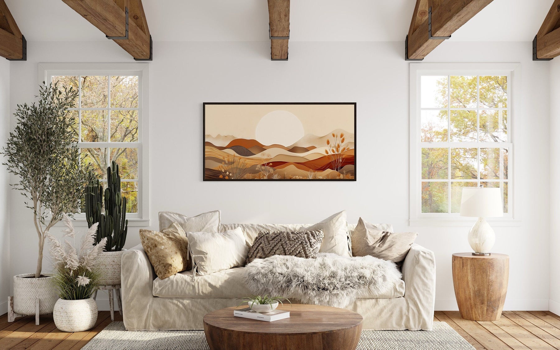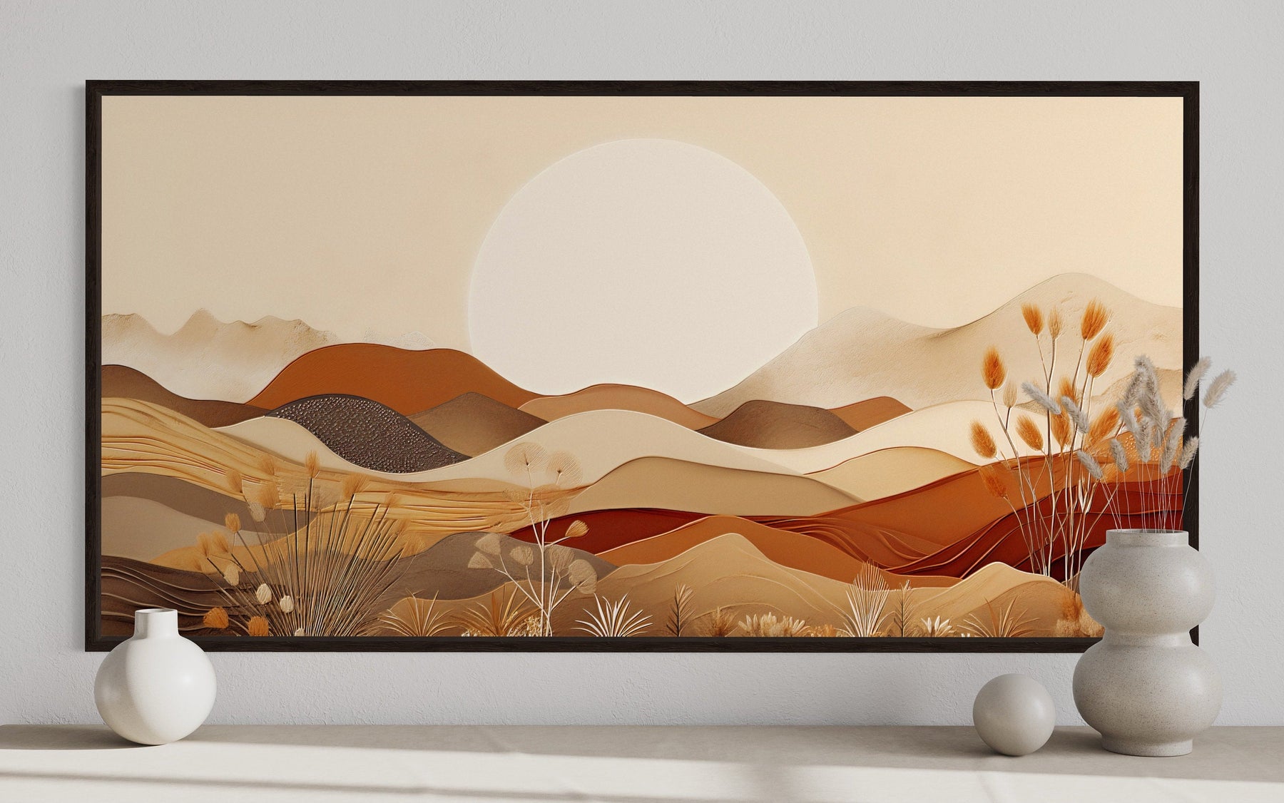 Boho Desert Wall Art - Mid Century Landscape Framed Canvas in Neutral Earth Tones