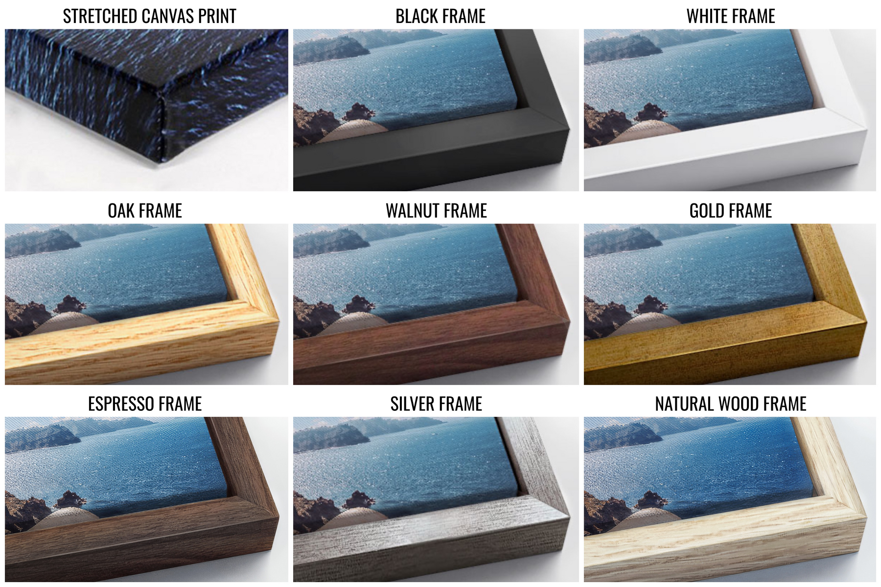 — Les cadres flottants sont disponibles en différentes tailles et couleurs, il y a une photographie avec les options de cadre disponibles pour cette liste !
