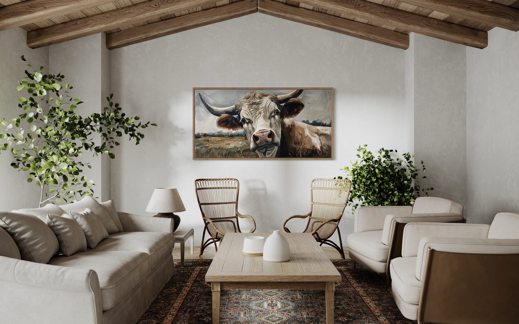 Décoration murale Vache curieuse - Toile encadrée style ferme au charme rustique