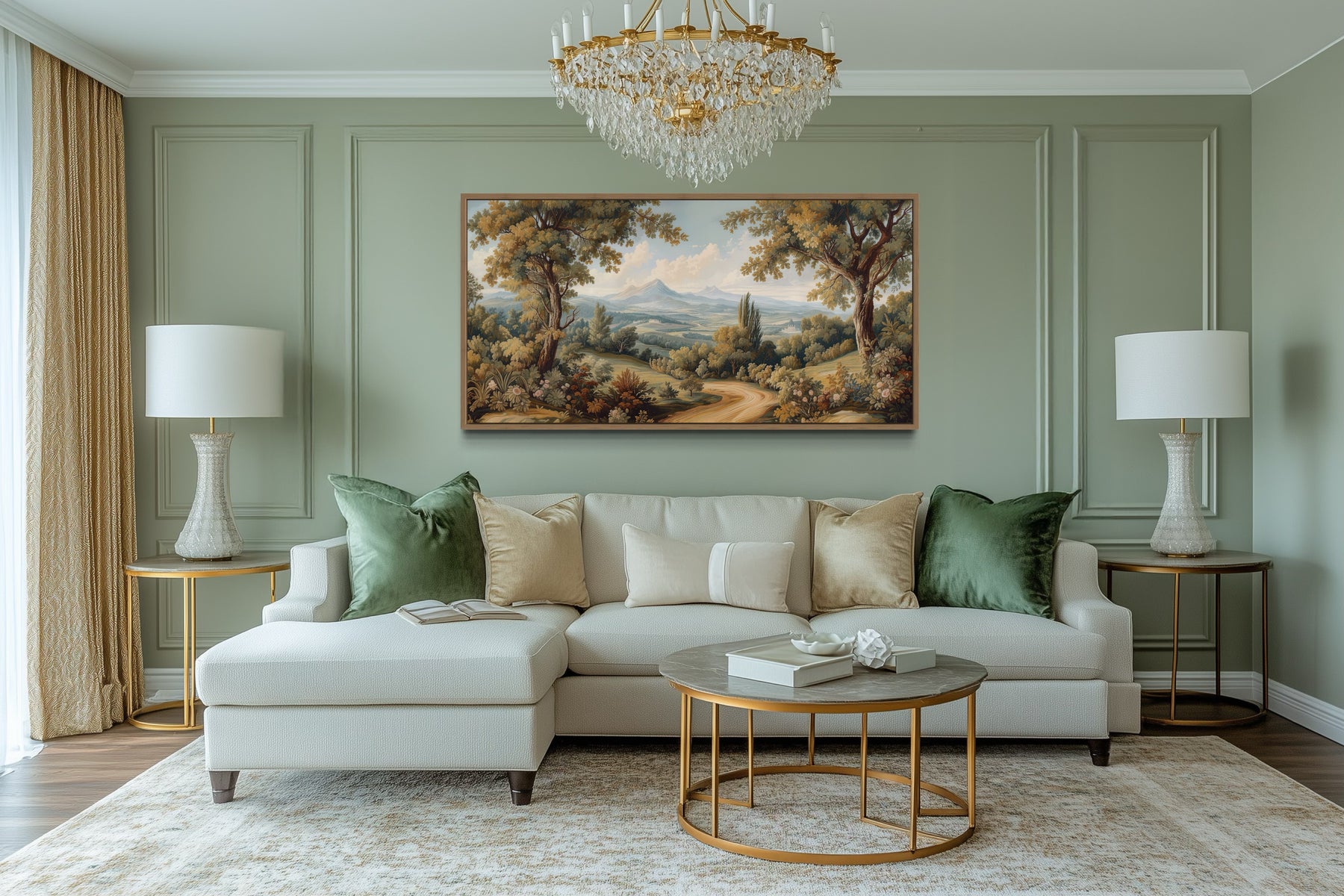 Cette toile murale encadrée de style antique représentant un paysage est parfaite pour les maisons à l'esthétique classique, vintage ou traditionnelle. Elle complète les salons formels, les bibliothèques confortables ou les études sophistiquées, ajoutant une touche élégante à votre espace. Son design intemporel se marie à merveille avec des meubles anciens, des cadres ornés et des accents de bois rustiques, rehaussant le caractère de la pièce. Pour les intérieurs modernes, cette pièce sert de contraste saisissant, offrant un point focal vintage qui équilibre les éléments contemporains. Qu'elle soit présentée comme pièce maîtresse ou comme partie d'un mur de galerie organisé, elle apporte chaleur et tranquillité à n'importe quelle pièce. Le paysage serein et les détails raffinés de l'œuvre d'art la rendent idéale pour les espaces où la détente et la sophistication sont prioritaires. Transformez votre maison en une retraite accueillante avec cette toile murale encadrée de style antique représentant un paysage.