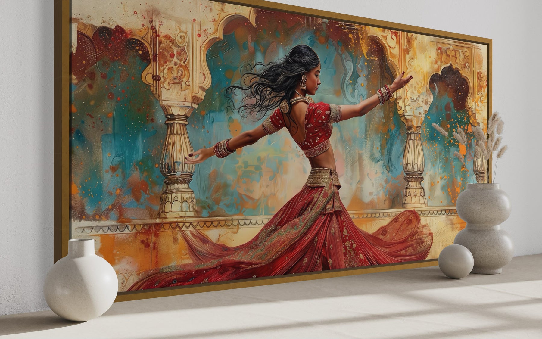 Indian Dance Wall Art – Framed Canvas Print of Traditional Indian Woman Dancer